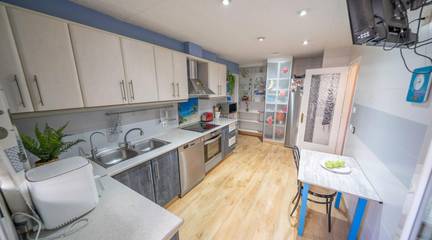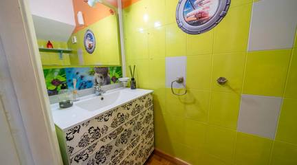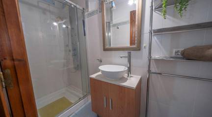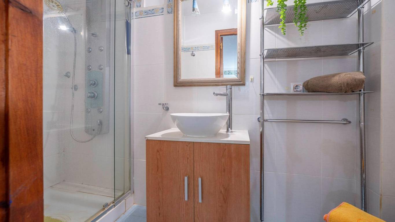 Upon entering the house you find a very spacious living room, with lots of light, and the stairs that go up to the night area. In the background, to the right, a guest bathroom, and in front the equipped kitchen with access to the garden, porch, barbecue area and a double room with a shower bathroom.