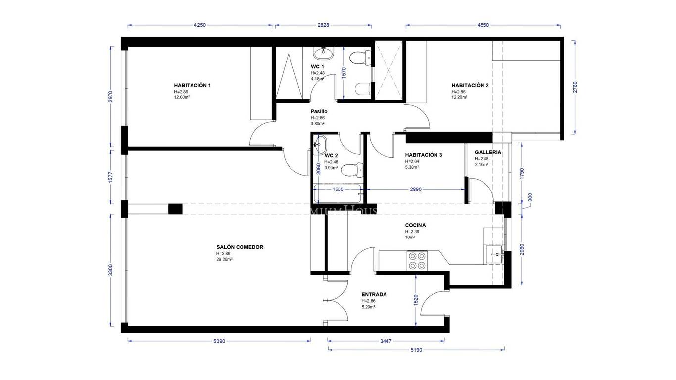 Total area: 100 m2