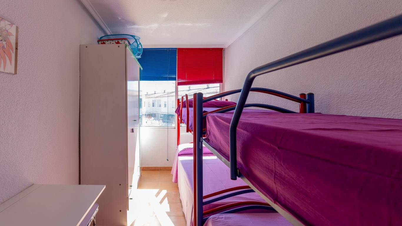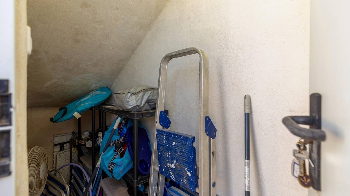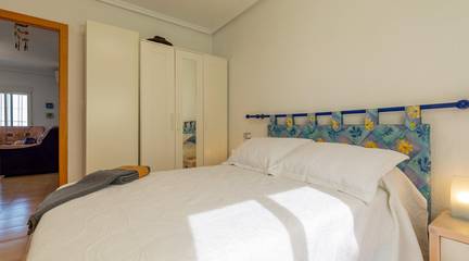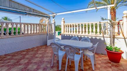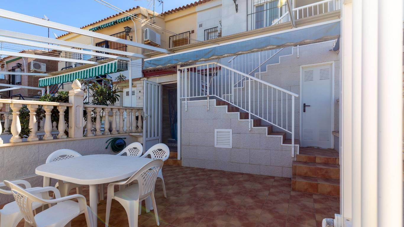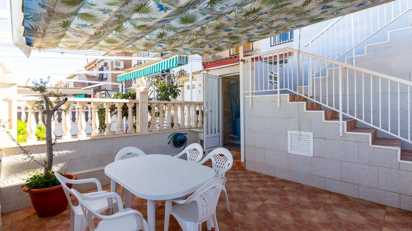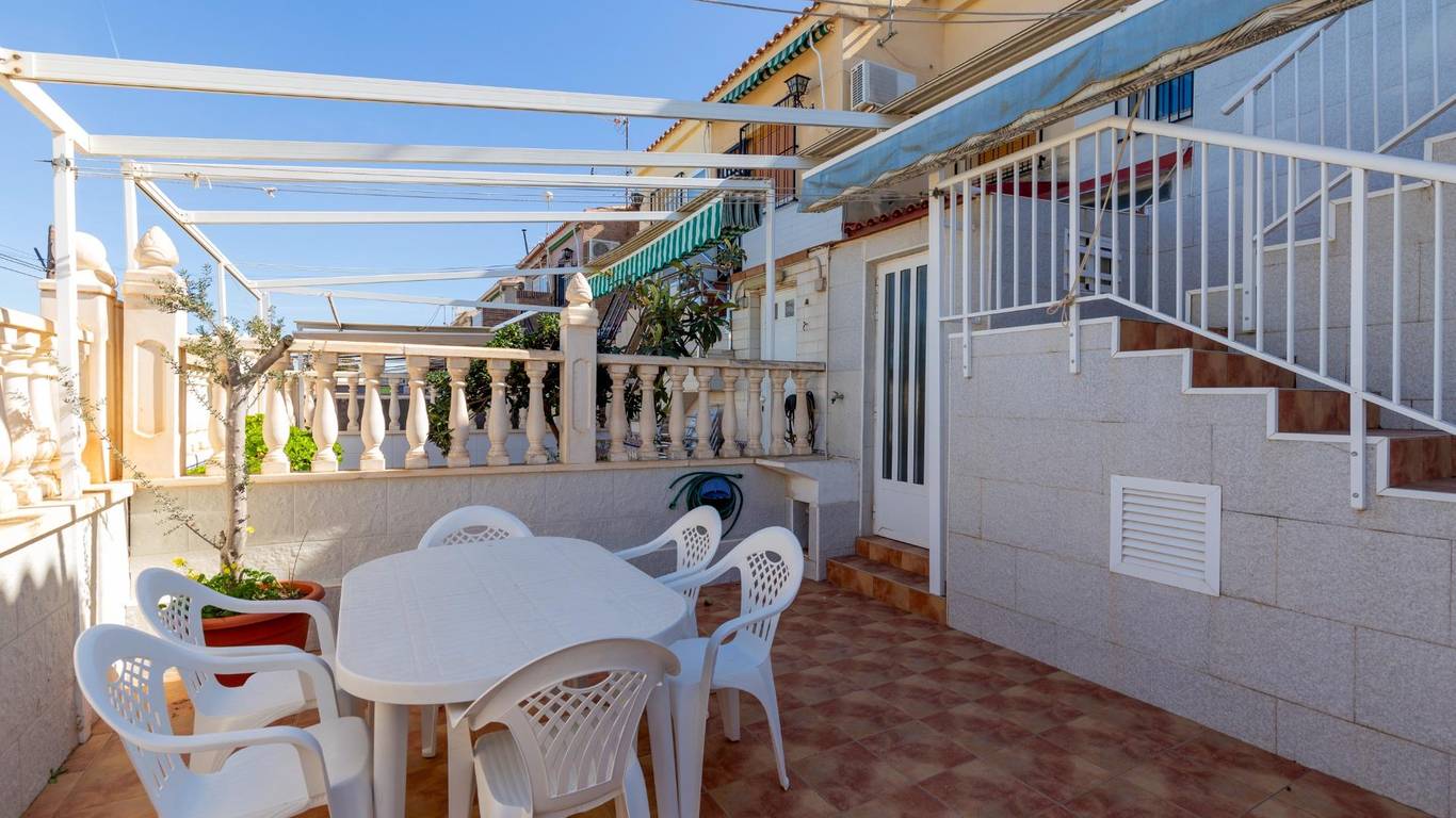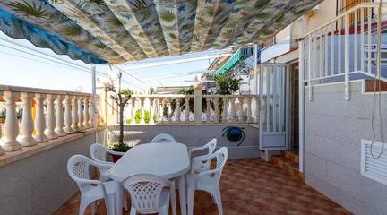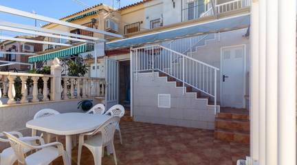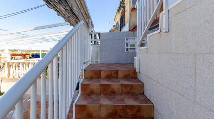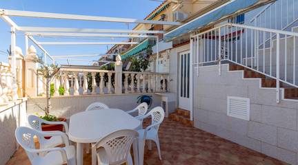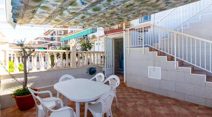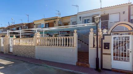 I present this recently renovated top-floor bungalow, located in Playa Lisa, in the Los Sauces de Santa Pola urbanization. Calle Tulipanes nº 21. The house, approximately 50 m2, is very well distributed, without a hallway, with cross ventilation and unobstructed views. It is completely exterior and very bright, facing north and south. On the first floor, it has 2 bedrooms with wardrobes, a living-dining room, a semi-independent kitchen with a window, and a full bathroom with a shower. On the ground floor, it has a large 20 m2 terrace with a balustrade and awnings, ideal for enjoying gatherings with friends and family. It also includes a storage room under the stairs for storing beach gear or bicycles, and another room with a shower and washing machine. In front of the house, there is a private space of approximately 22 m2 for parking your vehicle or creating a leisure area of your choice: a pool for the little ones, a barbecue with a pergola, a chill-out area. The possibilities are endless. It also includes a storage room under the stairs for storing beach gear or bicycles, and another room with a shower and washing machine. The bungalow is sold practically furnished and with appliances (please inquire). It has aluminum/double-glazed windows, a security door, tiled floors, air conditioning, a ceramic hob, an electric oven and water heater, and aluminum railings. Community fees are only 60 euros per year and include nighttime street lighting and the remote control to open the entrance barrier with your car. The property tax (IBI) is 147 euros and the garbage tax is 63 euros. The area has several nearby services open year-round and is ideal for enjoying your free time and relaxing. The house is about 600 meters from the beach with flat access. Direct access to the N-332 takes you to Alicante, Elche, or the airport, which are 15 to 20 minutes away and very well connected. Playa Lisa, due to its shallow waters, is very safe for swimming for children and adults. Furthermore, due to its good orientation to the winds, it is ideal for sailing sports such as windsurfing and skating. It also offers lifeguard services and first aid. Notary fees, property registration fees, and taxes (ITPAJD, VAT) are not included in the price.