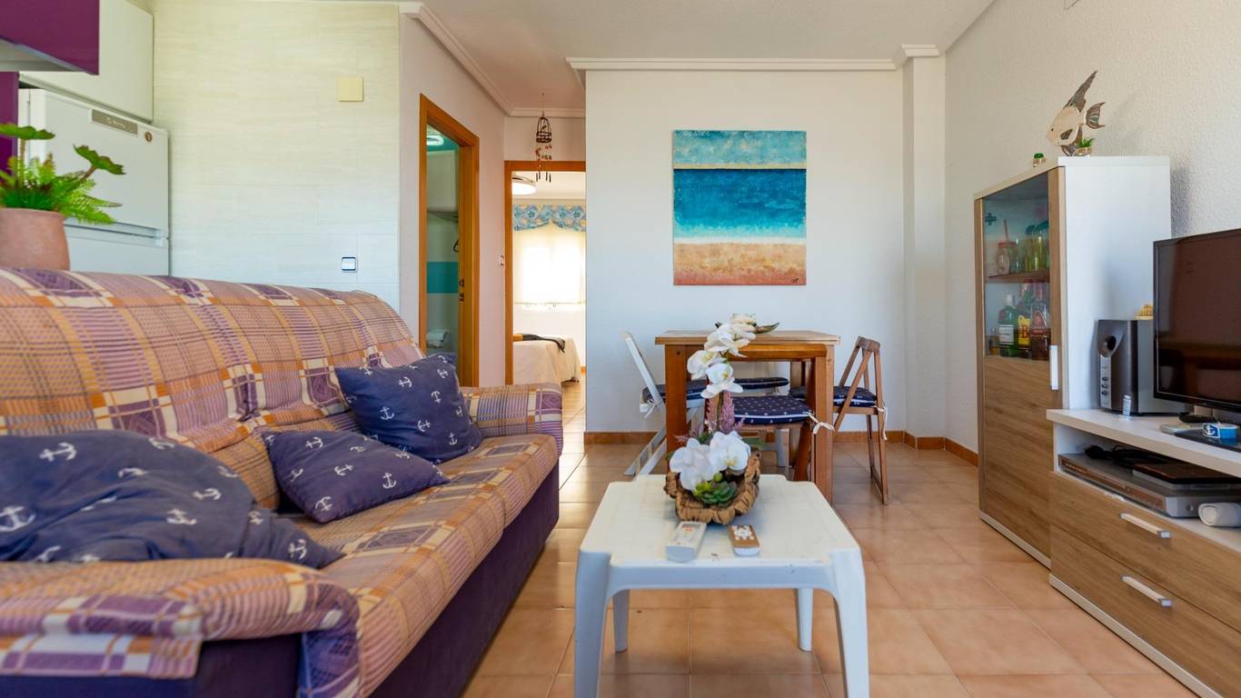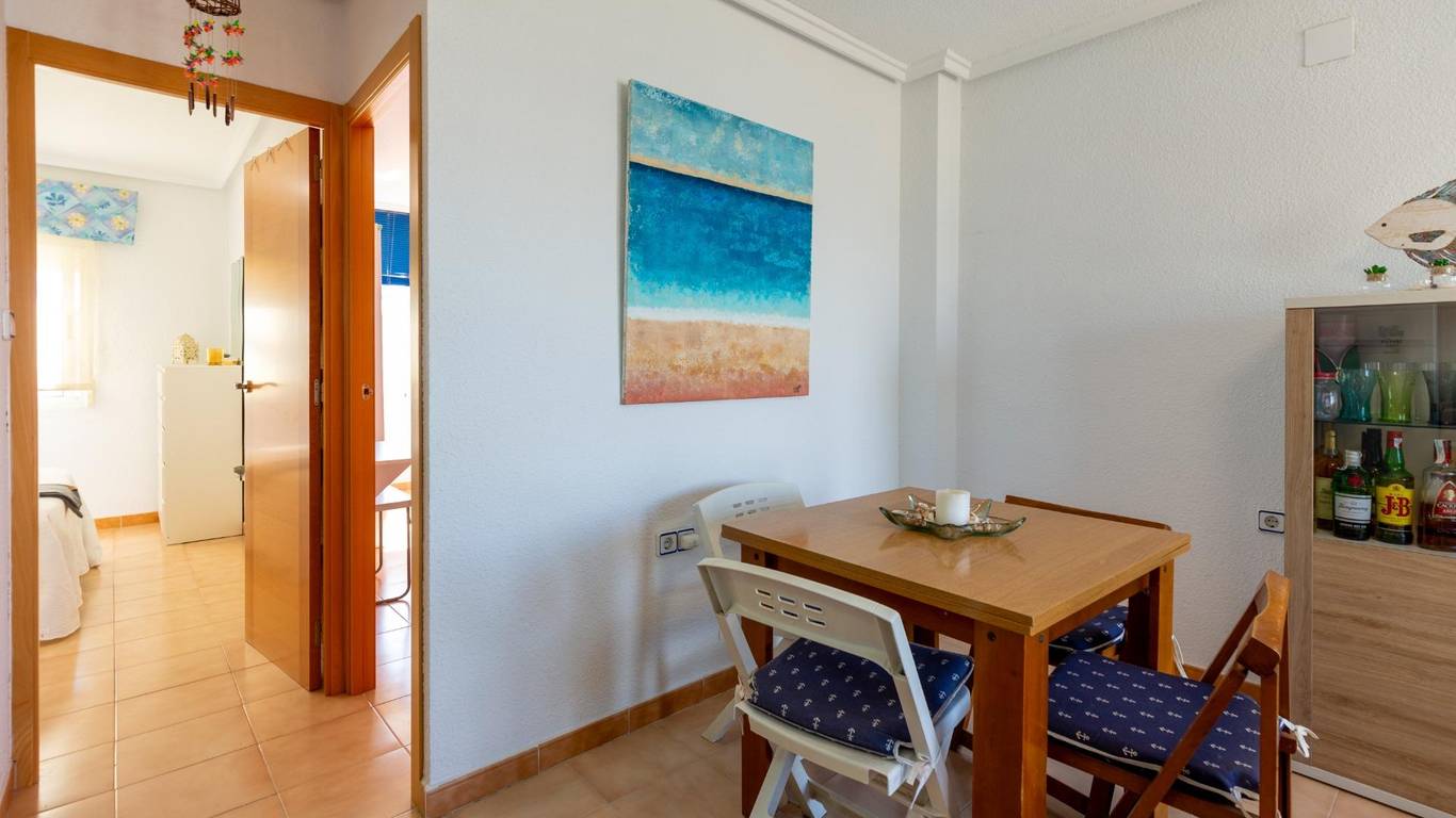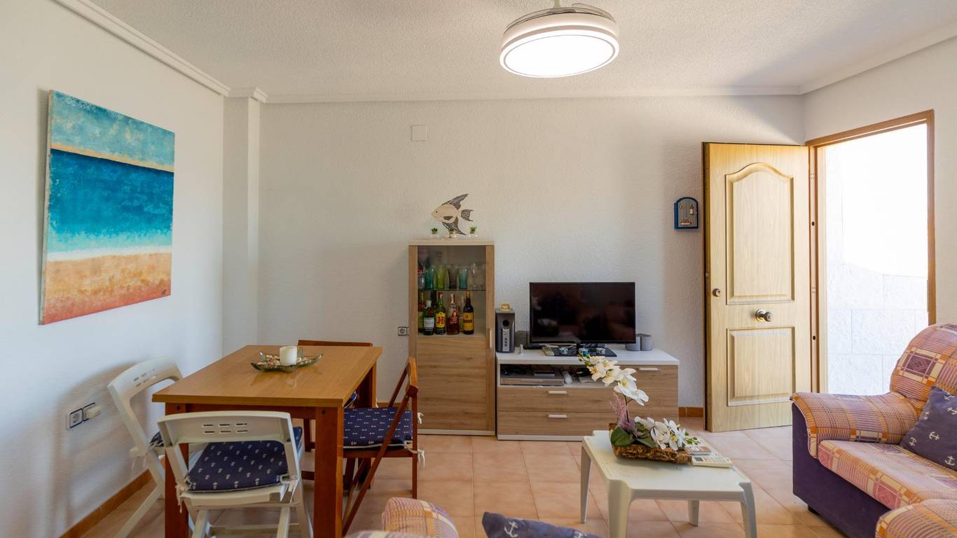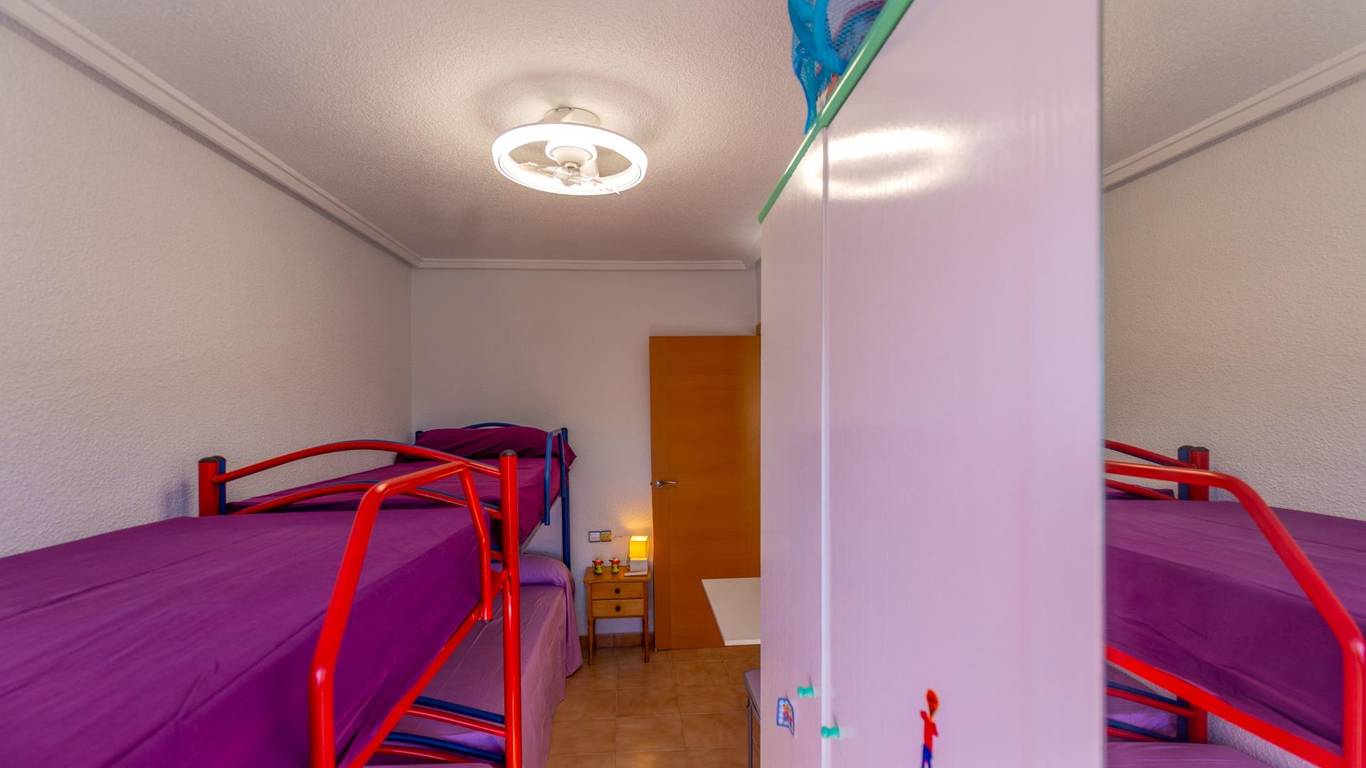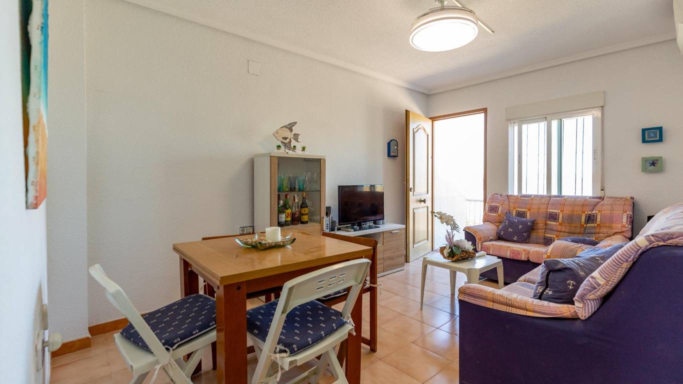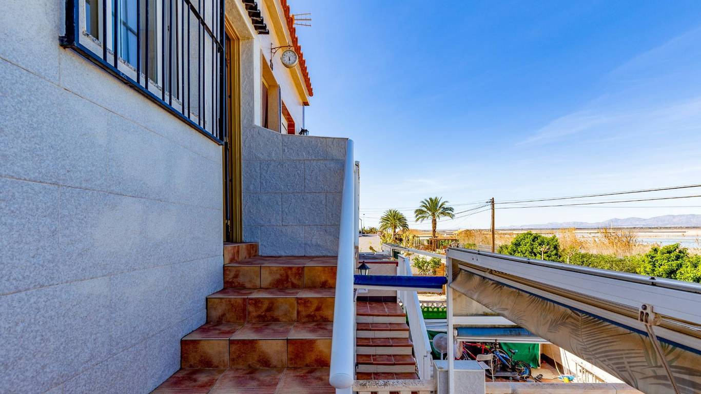 I present this recently renovated top-floor bungalow, located in Playa Lisa, in the Los Sauces de Santa Pola urbanization. Calle Tulipanes nº 21. The house, approximately 50 m2, is very well distributed, without a hallway, with cross ventilation and unobstructed views. It is completely exterior and very bright, facing north and south. On the first floor, it has 2 bedrooms with wardrobes, a living-dining room, a semi-independent kitchen with a window, and a full bathroom with a shower. On the ground floor, it has a large 20 m2 terrace with a balustrade and awnings, ideal for enjoying gatherings with friends and family. It also includes a storage room under the stairs for storing beach gear or bicycles, and another room with a shower and washing machine. In front of the house, there is a private space of approximately 22 m2 for parking your vehicle or creating a leisure area of your choice: a pool for the little ones, a barbecue with a pergola, a chill-out area. The possibilities are endless. It also includes a storage room under the stairs for storing beach gear or bicycles, and another room with a shower and washing machine. The bungalow is sold practically furnished and with appliances (please inquire). It has aluminum/double-glazed windows, a security door, tiled floors, air conditioning, a ceramic hob, an electric oven and water heater, and aluminum railings. Community fees are only 60 euros per year and include nighttime street lighting and the remote control to open the entrance barrier with your car. The property tax (IBI) is 147 euros and the garbage tax is 63 euros. The area has several nearby services open year-round and is ideal for enjoying your free time and relaxing. The house is about 600 meters from the beach with flat access. Direct access to the N-332 takes you to Alicante, Elche, or the airport, which are 15 to 20 minutes away and very well connected. Playa Lisa, due to its shallow waters, is very safe for swimming for children and adults. Furthermore, due to its good orientation to the winds, it is ideal for sailing sports such as windsurfing and skating. It also offers lifeguard services and first aid. Notary fees, property registration fees, and taxes (ITPAJD, VAT) are not included in the price.