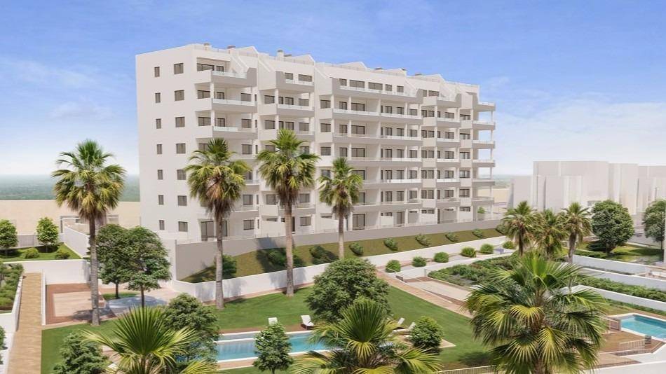New Residential Development in San Miguel de SalinasExclusive Apartments in a Unique Natural EnvironmentDiscover this new development in San Miguel de Salinas, an exclusive residential complex made up of 5 blocks of flats with spacious communal areas, designed to offer comfort and quality of life.This gated complex has a spectacular communal garden of almost 10,000 m, distributed over three levels and integrated with three communal swimming pools, surrounded by natural lawns and a carefully selected range of trees and plants.The homes have been designed to take advantage of natural light and unobstructed views, offering an ideal option both as a second home and for year-round living.Types of homes availableIn this exclusive residential complex, you can choose between:Ground floors with large private gardens.Intermediate floors with terraces of more than 20 m.Penthouses with terraces and private rooftop solarium.Currently available is Block 1, comprising 42 homes with excellent value for money.First Class Quality and EquipmentAll homes come fully equipped, including:Electrical appliances included in the kitchen.Fully equipped bathrooms, with furniture, screens and LED lighting system.Complete installation of ducted air conditioning.Parking space and storage room included in the price.We also have show flats in another similar project, so that you can see the quality of the finishes before delivery.Strategic Location on the Costa BlancaSan Miguel de Salinas is a charming town in the Vega Baja del Segura region, just a few minutes from the best beaches and golf courses on the Costa Blanca. Surrounded by a privileged natural environment, the municipality offers a peaceful atmosphere and all essential services such as supermarkets, restaurants, health centres and schools.Distances to the Main Points of InterestLas Colinas and Campoamor Golf Courses - 7 km.Beaches of Orihuela Costa and Torrevieja - 10 km.Zenia Boulevard Shopping Centre - 9 km.Alicante Airport - 50 km.Murcia-Corvera Airport - 55 km.Your New Home Awaits in San Miguel de SalinasWhether you are looking for an investment on the Costa Blanca or a home to enjoy all year round, this development offers a perfect combination of luxury, comfort and unbeatable location.Contact us today for more information and to arrange a viewing.