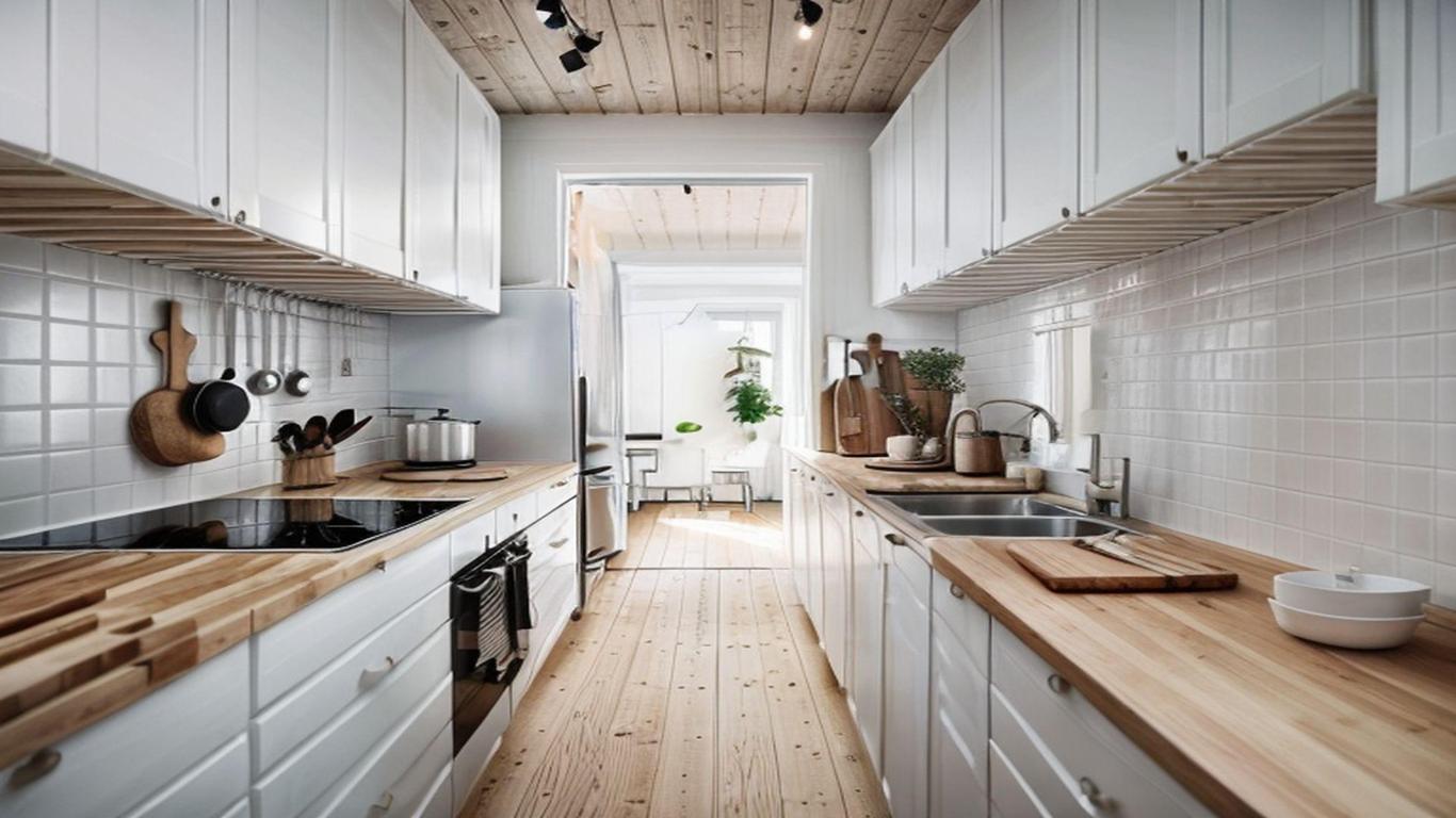 The kitchen is independent and has two accesses, from the living-dining room and from the living room.