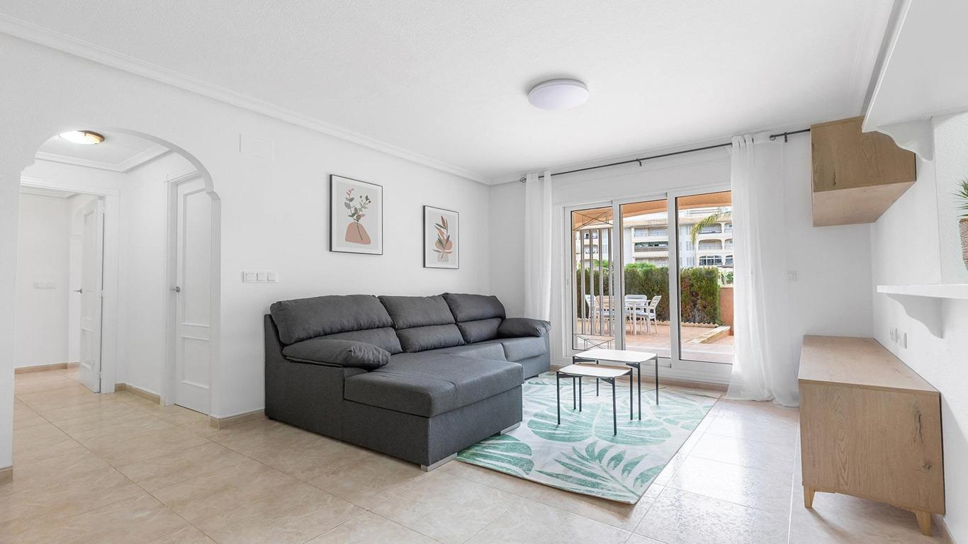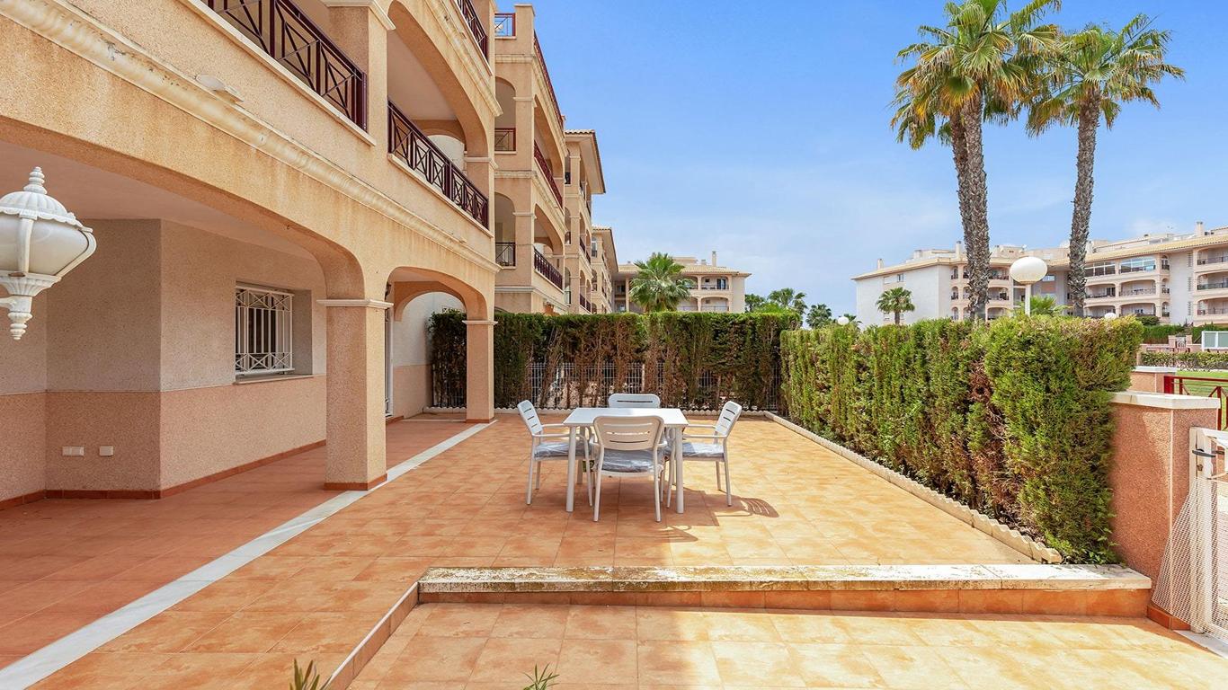 We present this ground-floor property in a private complex with plenty of privacy. It features 2 spacious bedrooms with 2 full bathrooms, as well as a large, fully-equipped kitchen with a utility room.The property is fully equipped with new furniture and decorAnd all this with a large plot where you can have family barbecues, play with your children or grandchildren, or relax with a book.One of the highlights of this property is its private community, which offers more than 4,000 m of gardens, tennis and basketball courts, a children's area, ornamental ponds, and a beautiful lagoon with a fountain and waterfall. The community also has a large pool surrounded by natural grass and trees, creating a relaxing, vacation-like atmosphere.Just 5 minutes from the famous Saturday market and a 10-minute walk from the Zenia Boulevard Shopping Center, this property is an excellent investment opportunity, with high rental potential year-round: up to 900 per month for long-term rentals or 1,000 per week for vacation rentals.Don't miss this opportunity Contact us to find out how this exciting property could become your new home.Thinking about selling your property and acquiring this dream apartment Our agency offers you a free valuation, with over 20 years of experience in the sector and the most up-to-date sales data. We will help you achieve a quick and advantageous sale so you can start enjoying the life you've always wanted by the sea. Contact us now and take the first step toward your new life on the Costa BlancaThe advertisement may contain errors or be incomplete it is not a binding offer.