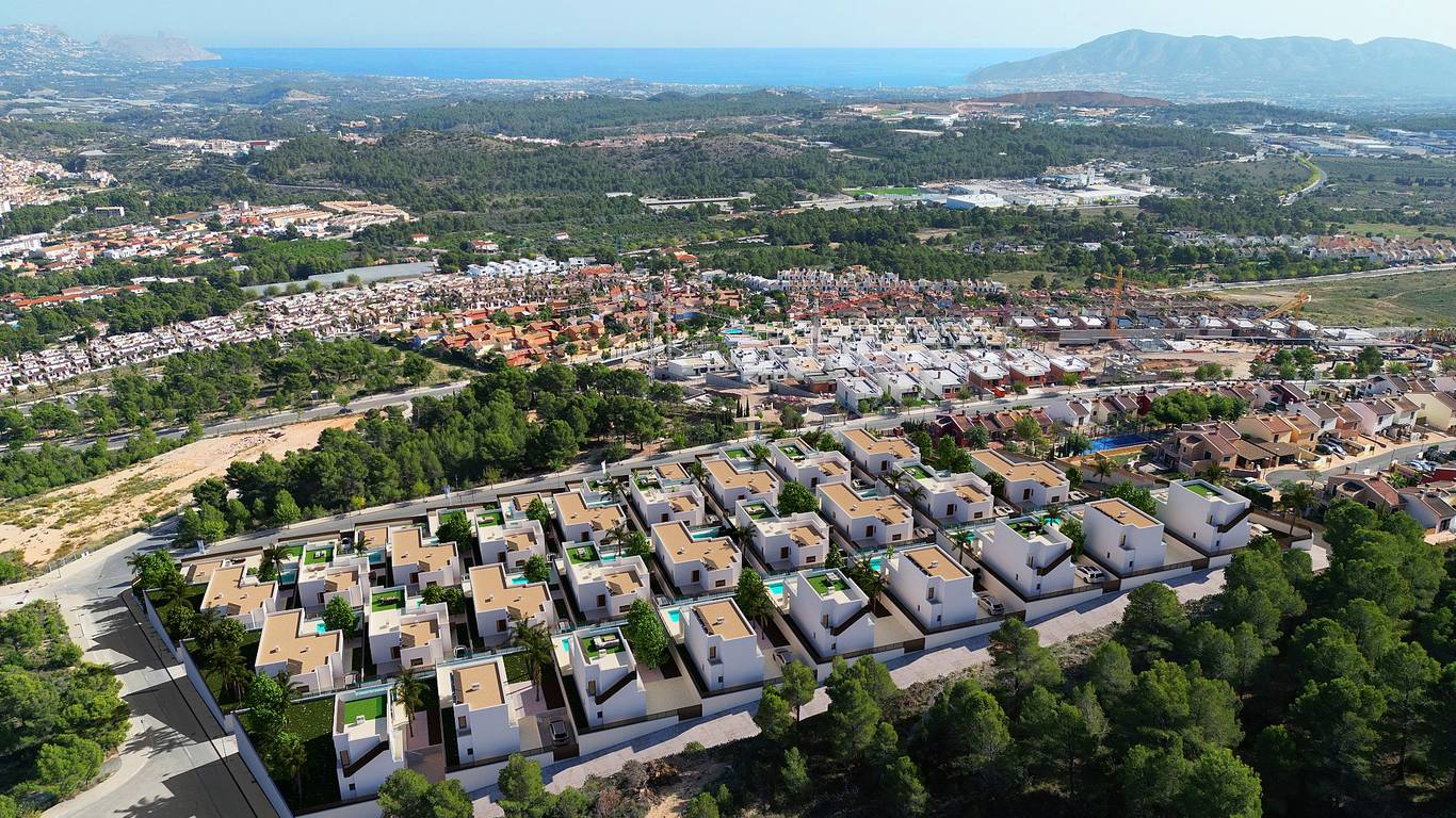 36 detached villas with panoramic sea and mountain views. Choose from a two-storey villa or a single-storey model. The villas have a spacious plot from 351 m².
