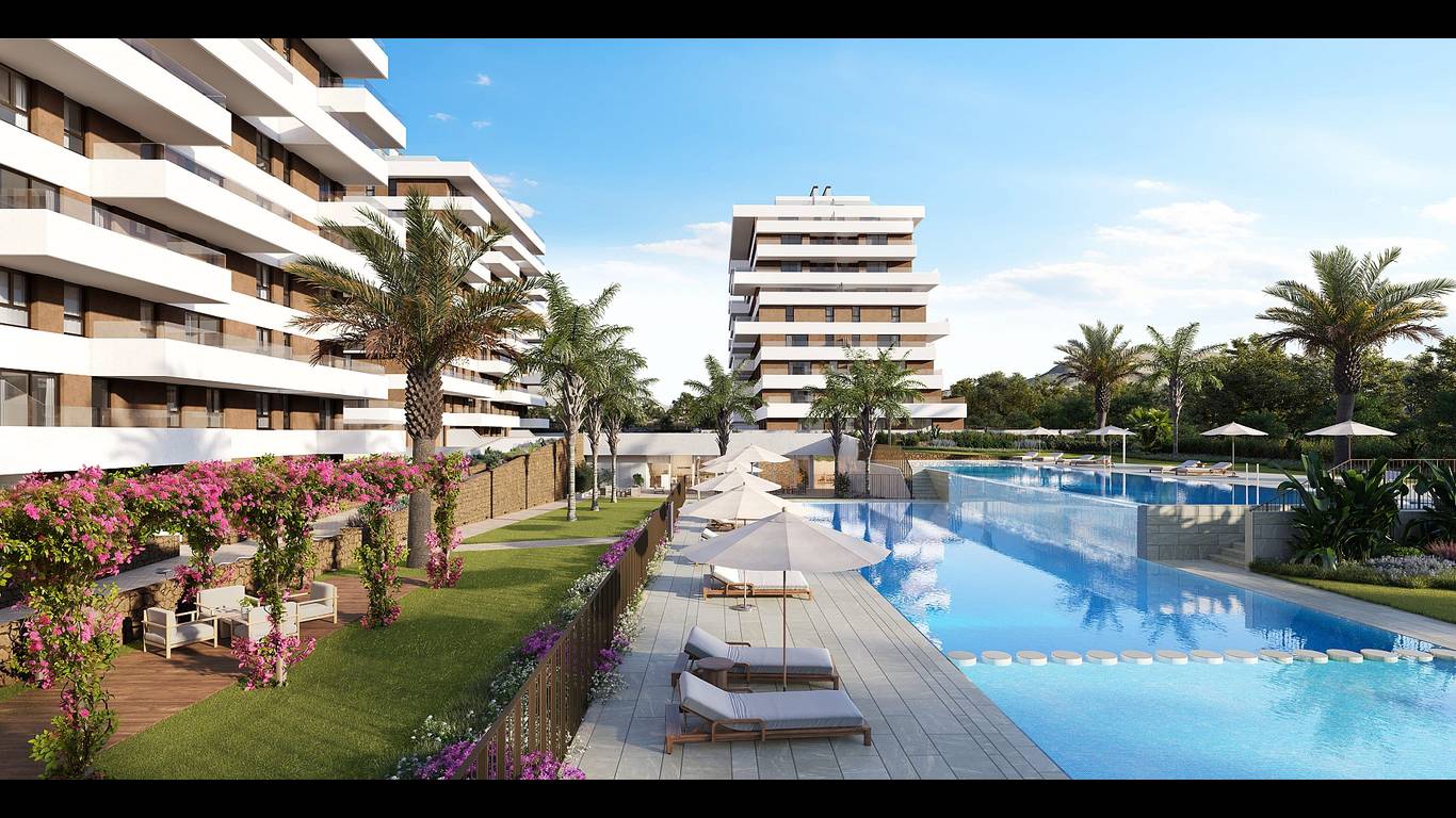Apartments - solarium provided with 3 Bedrooms and 2 Bathrooms, communal swimming pool and optional underground parking space.