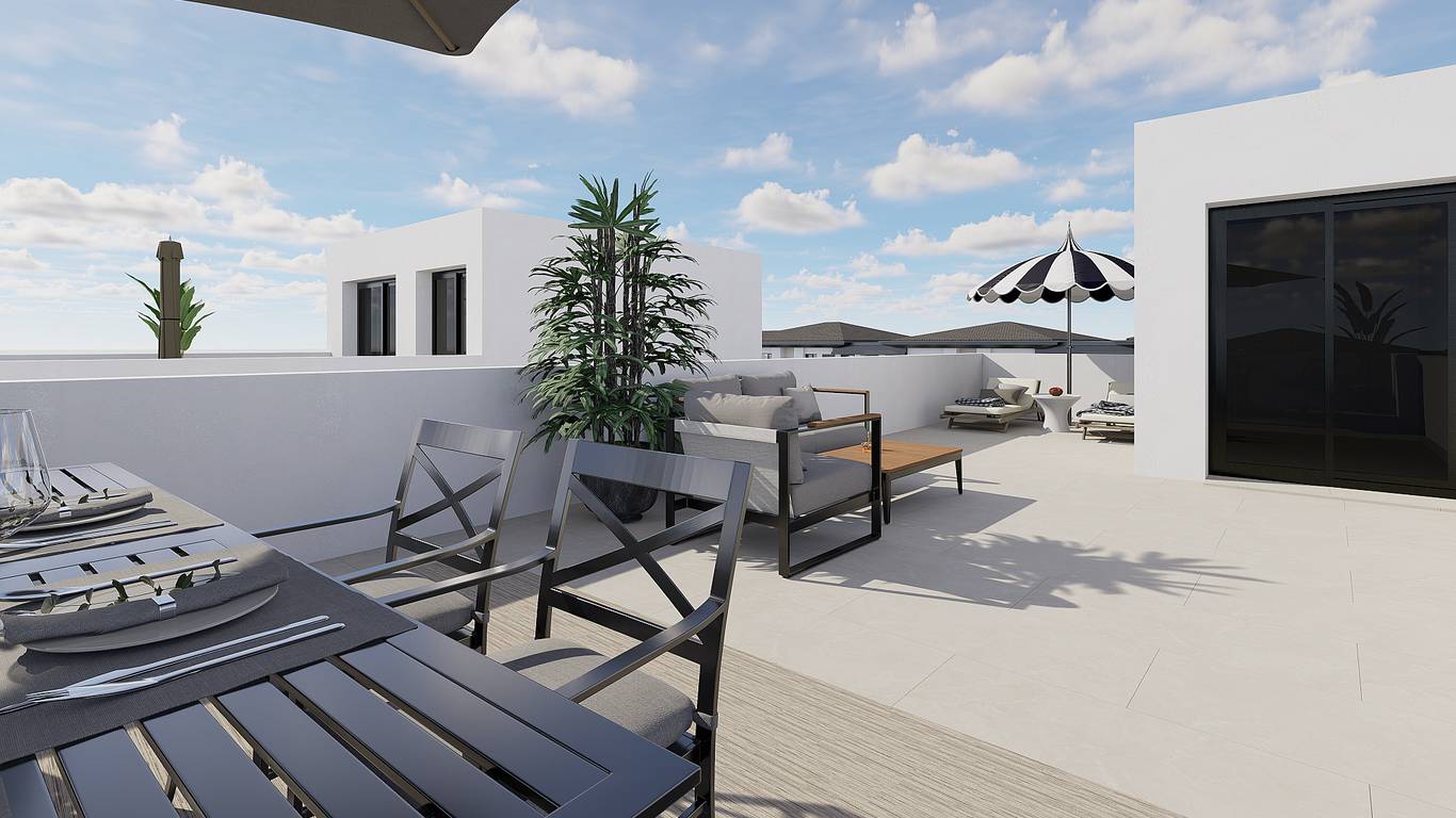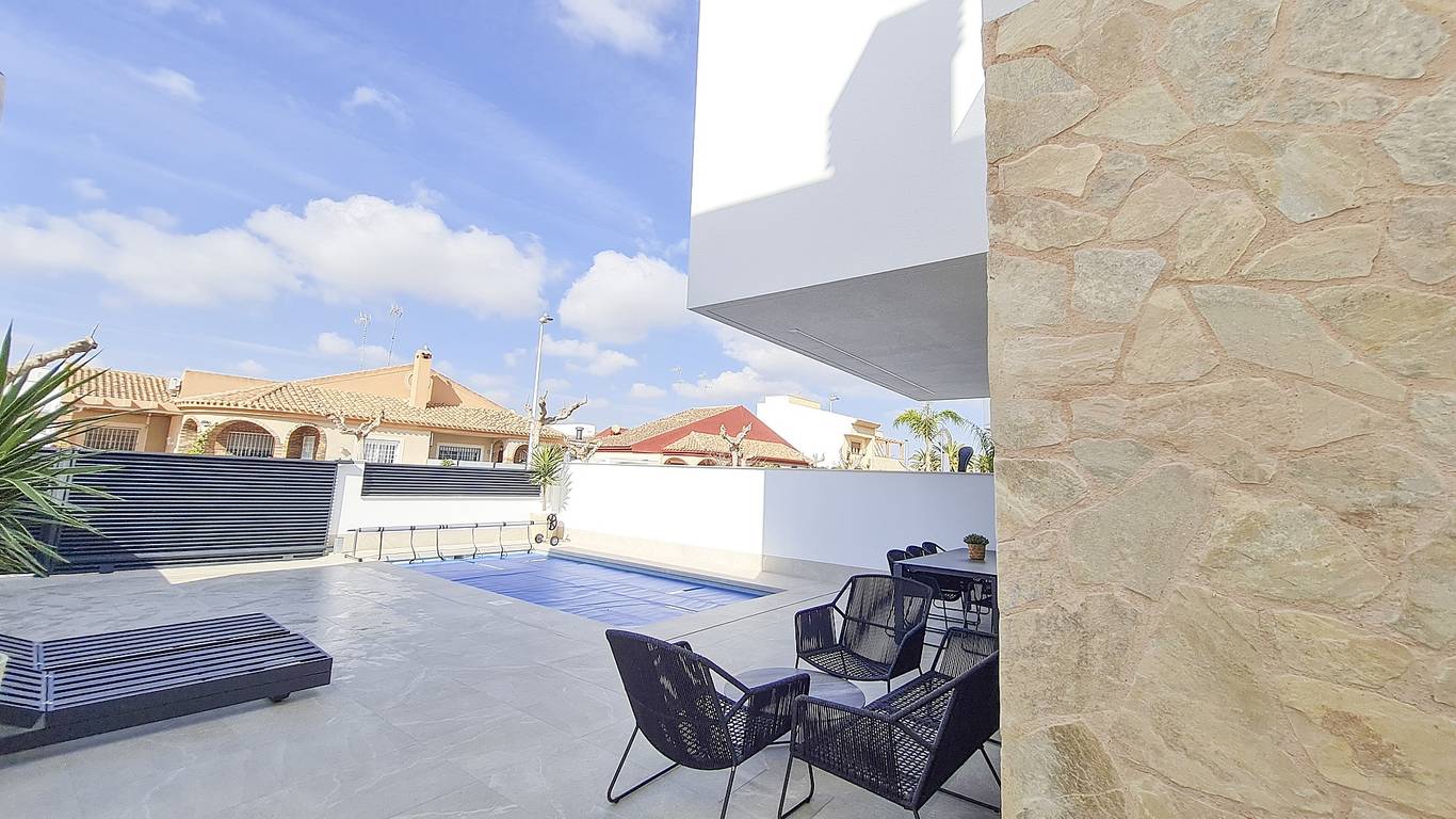The villas are located in the heart of San Pedro del Pinatar, a popular coastal town on the Mar Menor and the Mediterranean Sea. The location offers easy access to all amenities such as supermarkets, restaurants, parks and sports facilities, as well as the nearby Dos Mares shopping center. You will find beautiful beaches and nature reserves just a few minutes' drive away. For golf enthusiasts, courses such as Roda Golf, Lo Romero and La Serena Golf are nearby.