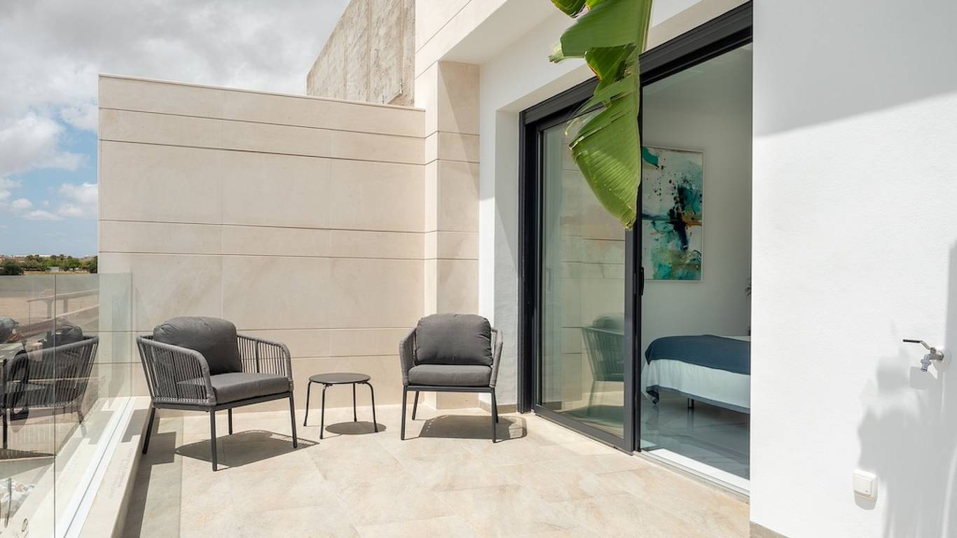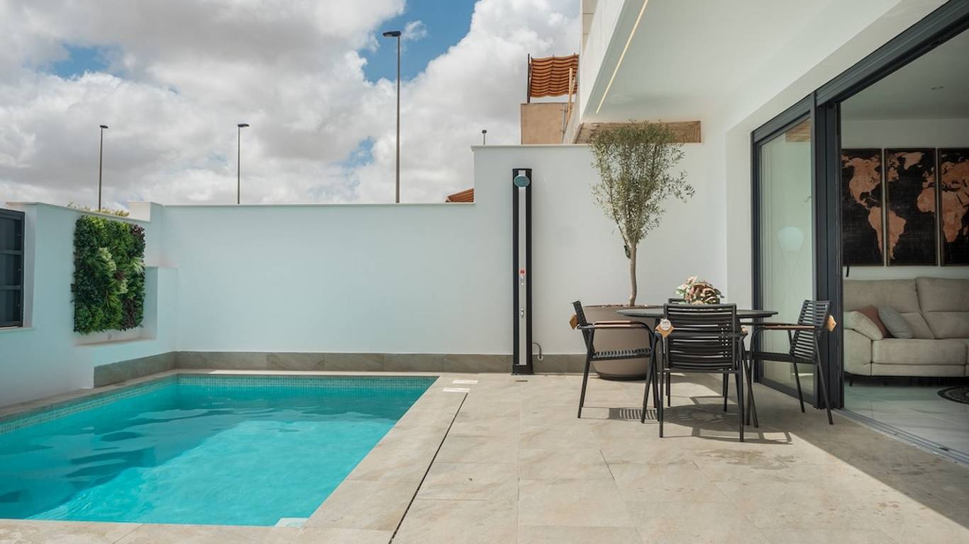 Mediterránea Luxury Homes offers four spacious semi-detached homes up to 170 m2. Inspired by Mediterranean style, the homes are in a prime location near La Llana beach and just 3 km from the promenade of Puerto San Pedro del Pinatar. With water sports, golf courses and excellent accessibility (30 minutes from Murcia Airport, 40 minutes from Alicante), this project is ideal for nature and sports lovers, both for permanent residence and holidays.