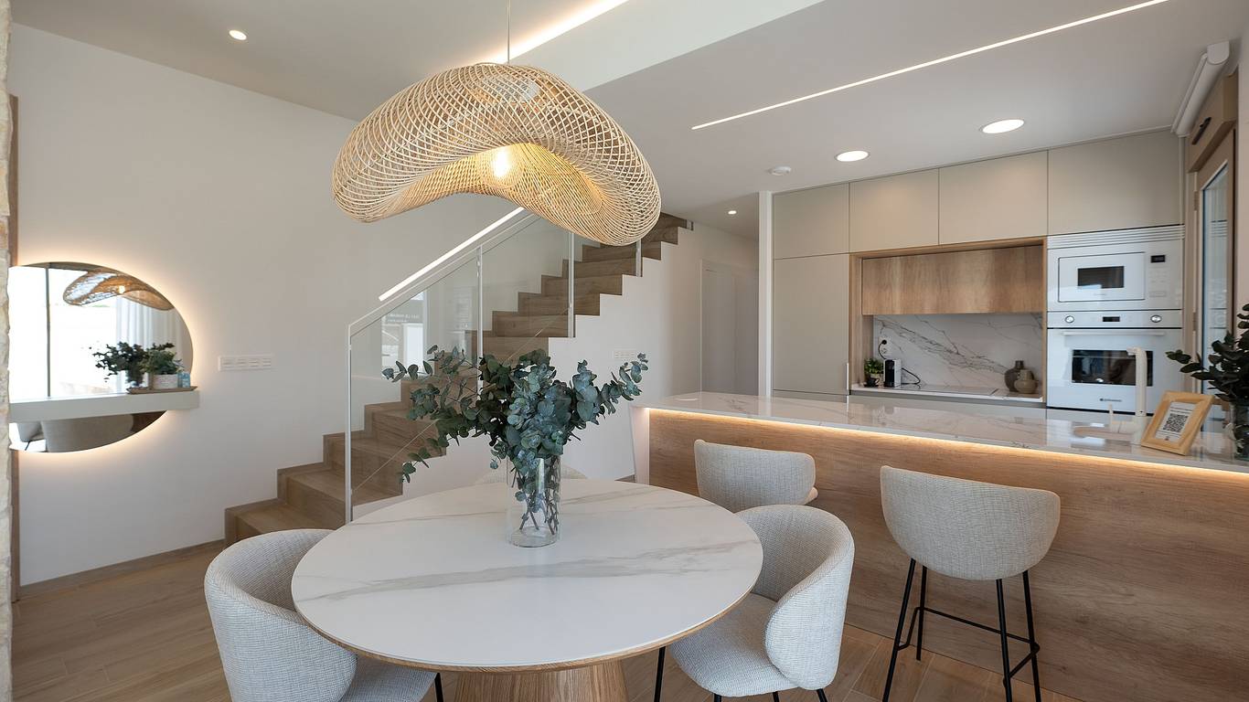These modern semi-detached villas in Lo Marabú are part of an exclusive residential development. The houses have a private garden, a solarium with summer kitchen, and a private swimming pool with outdoor toilet.