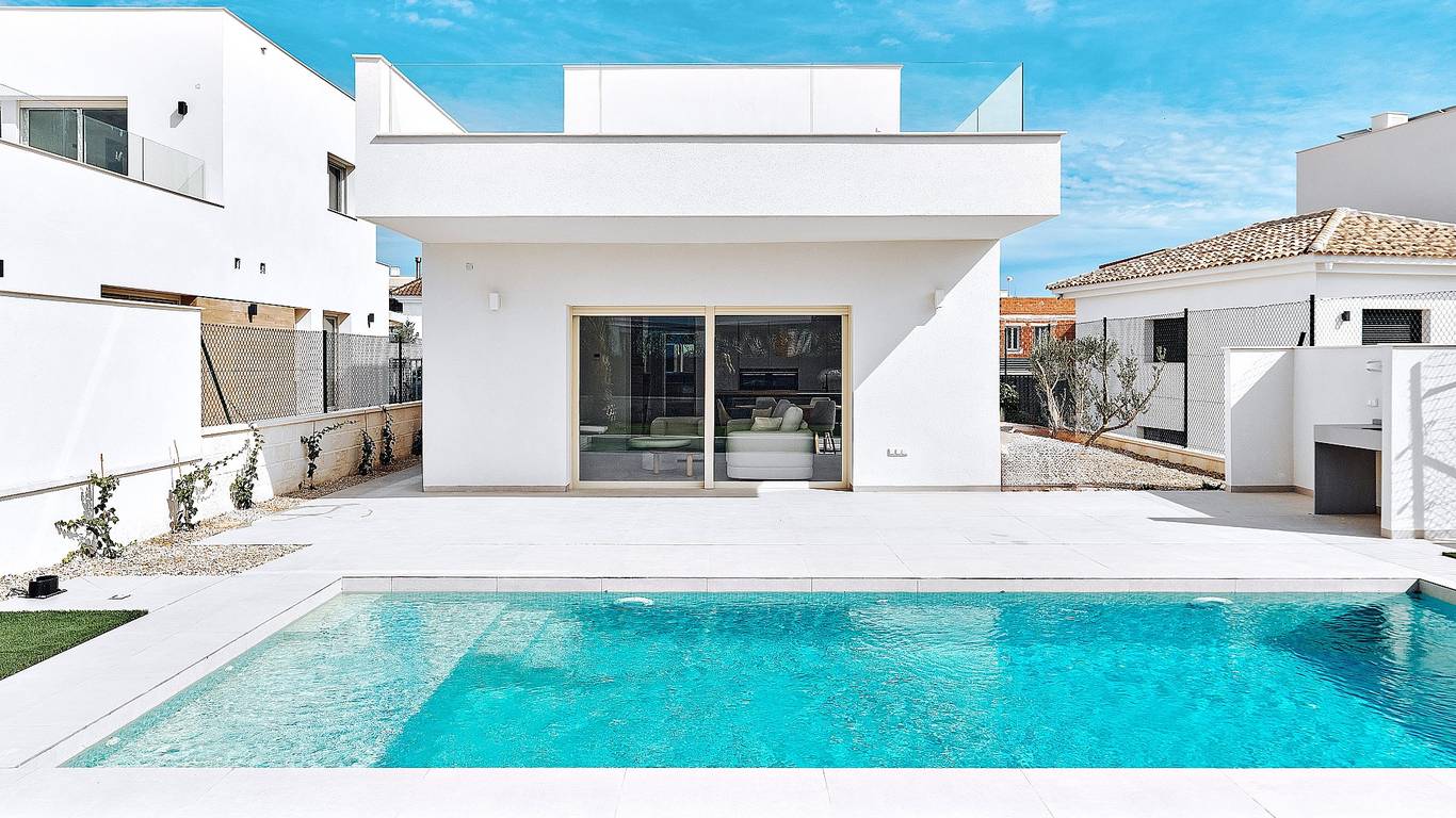 Located just 200 meters from supermarket, restaurants and bars you will find these beautiful 3 (one floor) or 4 bedroom (two floors) villas in La Herrada, Los Montesinos. Here you will find a nice selection of restaurants, supermarkets and shops. The beautiful square near the town hall offers the real Spanish atmosphere. Just a few minutes drive you are in Torrevieja, Ciudad Quesada or the beautiful sandy beaches of La Mata