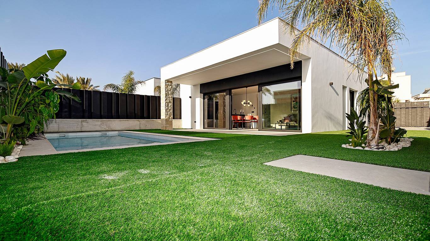 These newly built villas in Molina de Segura offer comfortable single-story living. The homes are situated in a secure, private urbanization with 24/7 security, surrounded by nature and mountains for a peaceful living environment.