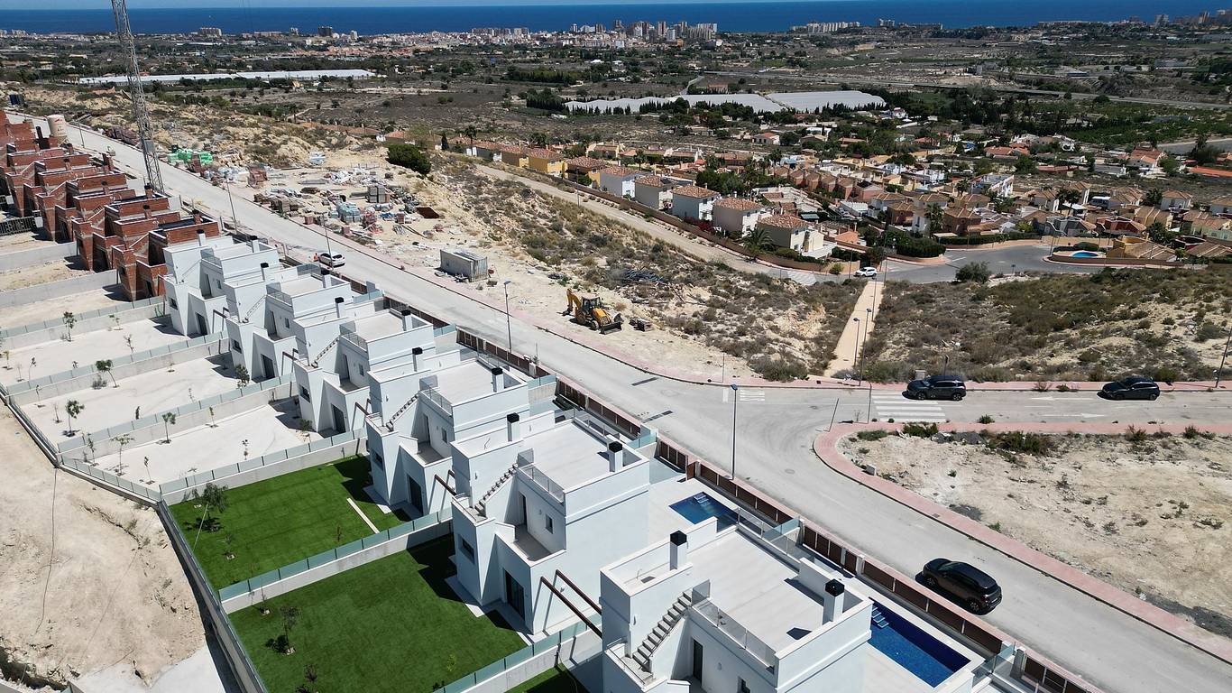 Discover these beautiful detached villas in Mutchamel, Alicante. The houses are spread over two floors, with breathtaking views over the city of Alicante, the mountains and the Mediterranean Sea. The homes are built on spacious plots ranging from 388 m2 to 786 m2.