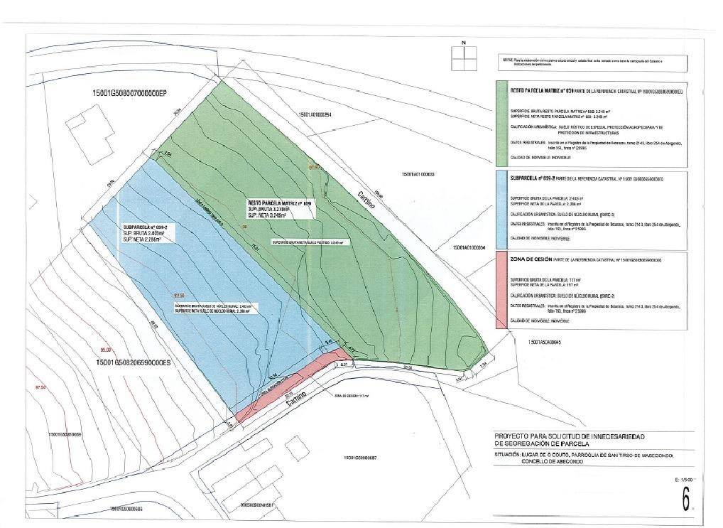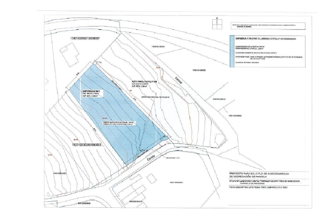 A tan solo 1,5 km del centro de Santirso de Mabegondo, tenemos para ti esta finca urbana de núcleo rural inmediatamente edificable. Con muy poca pendiente y con todos los servicios de alcantarillado, agua, luz y fibra inmediatamente delante. Podrás hacer una vivienda de hasta 880m2 edificable tanto en planta baja como con la posibilidad de hacer sótano y planta primera. Se trata de una parcela de suelo de núcleo rural en grado 3. La vía pública que está en frente, está todavía pendiente de asfaltar por el ayuntamiento, pero tiene contiguo un chalet recién construido. La finca se encuentra inscrita en el registro de la propiedad y la cesión de viales está ya hecha e inscrita. Además contamos con el proyecto de segregación y plano topográfico. Situada muy cerca del centro de Santirso de Mabegondo, con los servicios esenciales y la entrada de la A6-tercera ronda a tan solo 2,5km, con la ciudad de A Coruña a 20 minutos. Llámanos y ven a visitarla