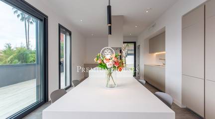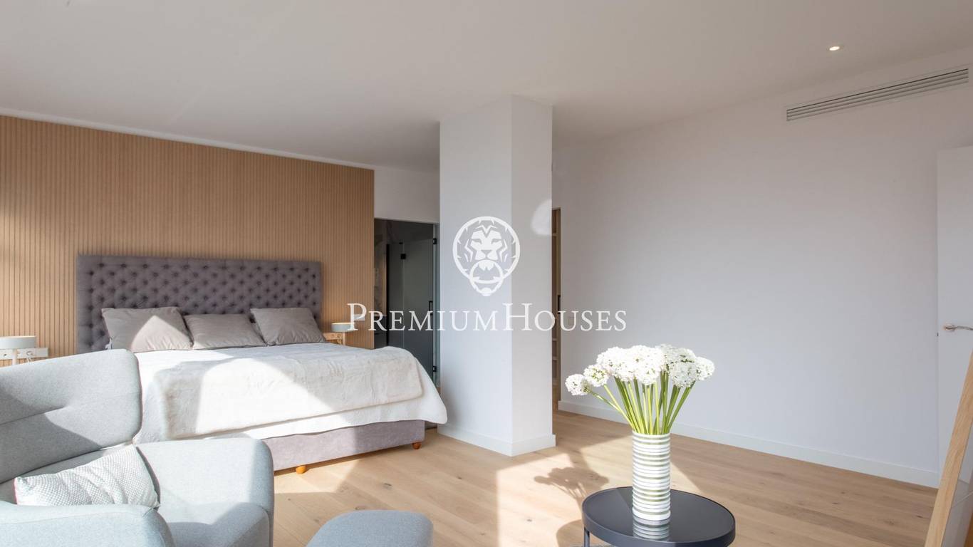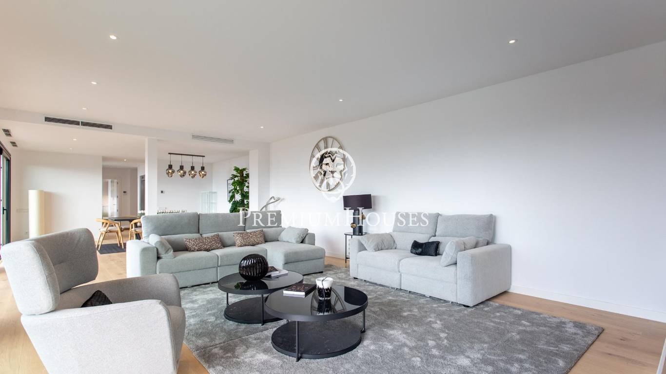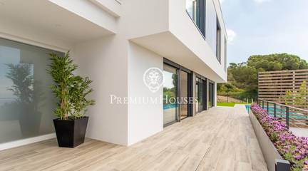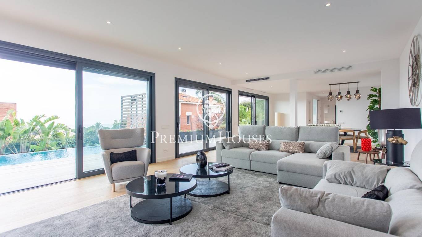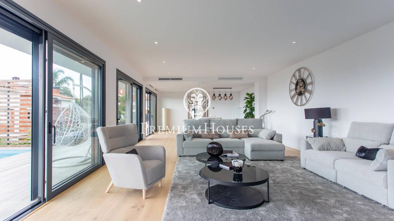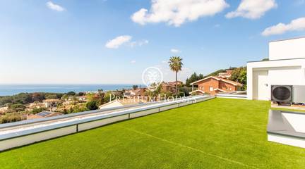 Se ofrece a la venta una espectacular vivienda con un diseño moderno y acabados de alta calidad, ubicada en una exclusiva urbanización residencial con vigilancia las 24h y una privilegiada orientación al Sur que permite tener luminosidad todo el día. La propiedad se levanta sobre una generosa parcela de 820 m y cuenta con una superficie construida de 581 m distribuidos en tres plantas y un Roof top con vistas panorámicas al mar y Barcelona conectadas por un ascensor y una elegante escalera con peldaños de roble.La planta principal alberga un amplio salón-comedor con grandes ventanales que permiten el acceso directo al jardín y a la piscina, generando un ambiente luminoso y acogedor. La cocina, de estilo contemporáneo, está completamente equipada con electrodomésticos de gama alta. En esta misma planta también se encuentra una habitación con baño en suite, junto con un funcional lavadero.En la planta superior, la vivienda ofrece una impresionante suite principal que incluye un espacioso vestidor, un baño completo y una terraza privada con vistas panorámicas al mar. Además, hay tres habitaciones más: dos de ellas tipo suite con su propio baño y una tercera con un baño independiente. Todas disponen de acceso a una terraza ajardinada que aporta calidez y conexión con el entorno exterior que incluye un Pitch Putt.La planta sótano sorprende con un garaje con capacidad para seis vehículos, un gimnasio totalmente equipado, una bodega, una sala polivalente ideal para diferentes usos y un baño adicional.La vivienda incluye numerosas comodidades y extras como sistema de riego automático, climatización por aerotermia, calefacción mediante suelo radiante, aire acondicionado, ascensor, piscina con sistema de cloración salina, instalación domótica, carpintería exterior de alta gama y certificado energético tipo A, lo que garantiza eficiencia y sostenibilidad.