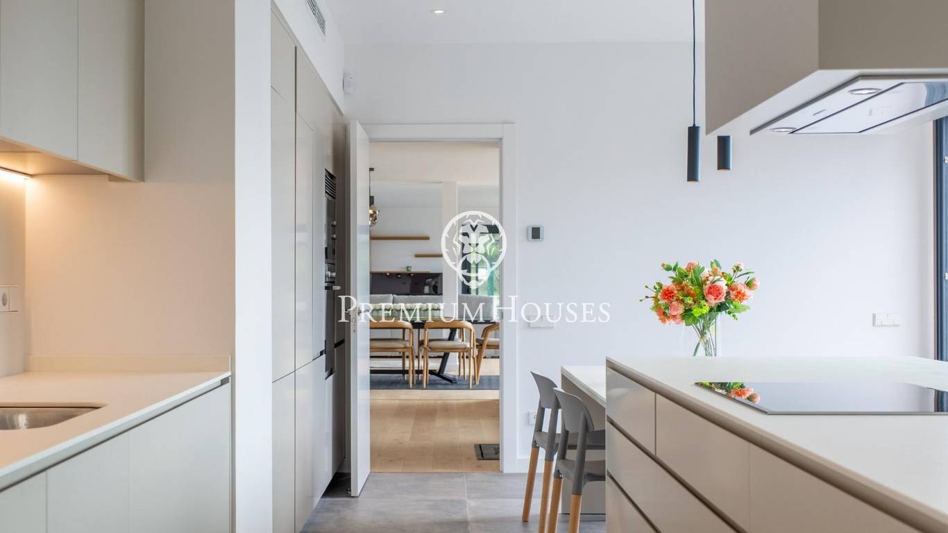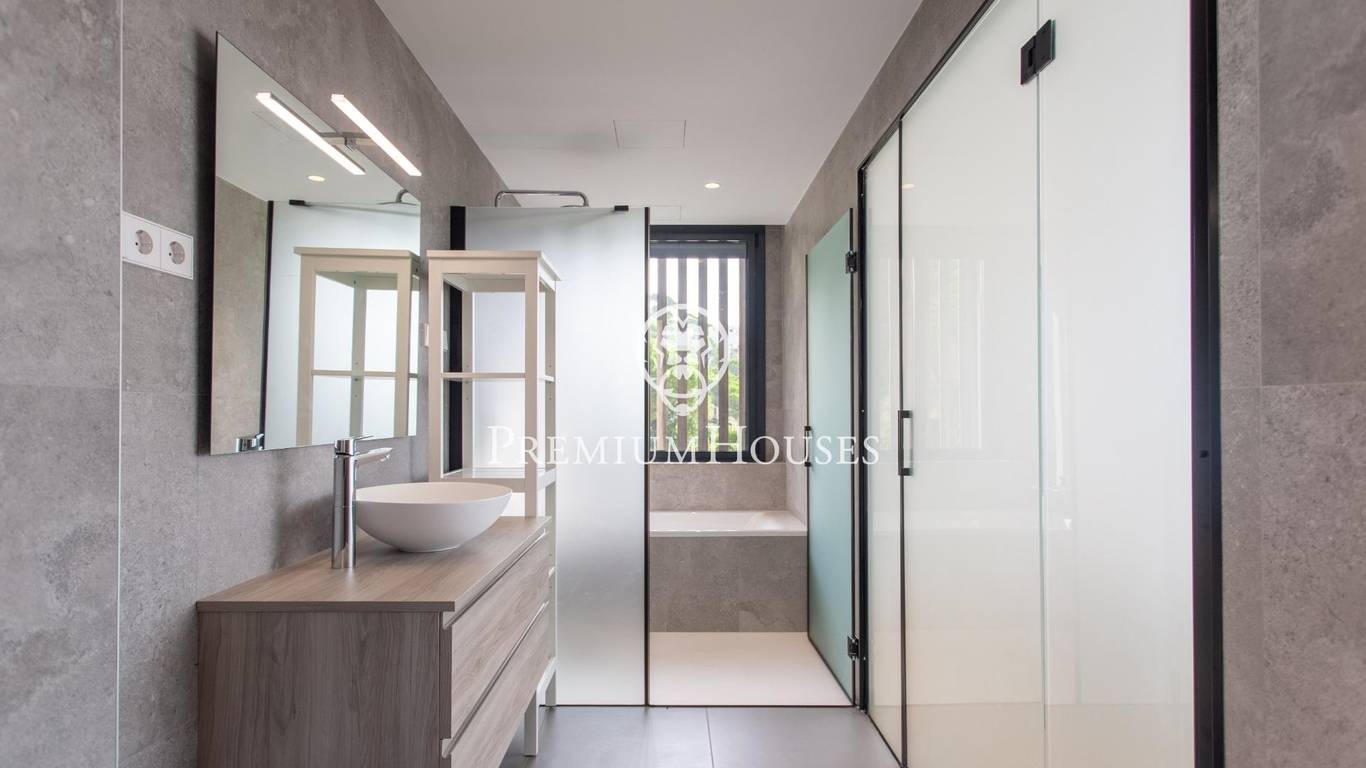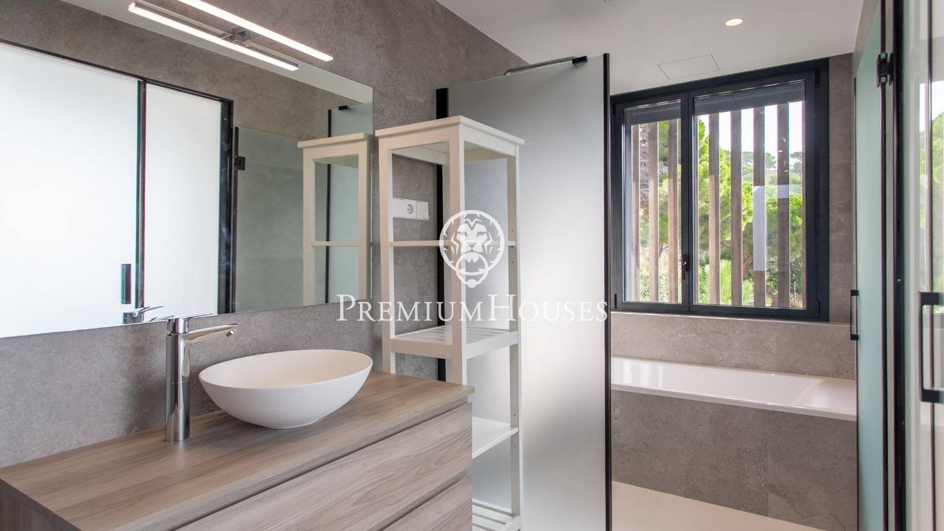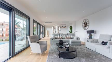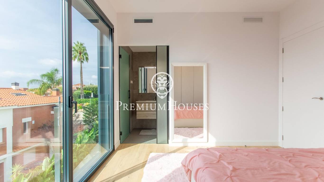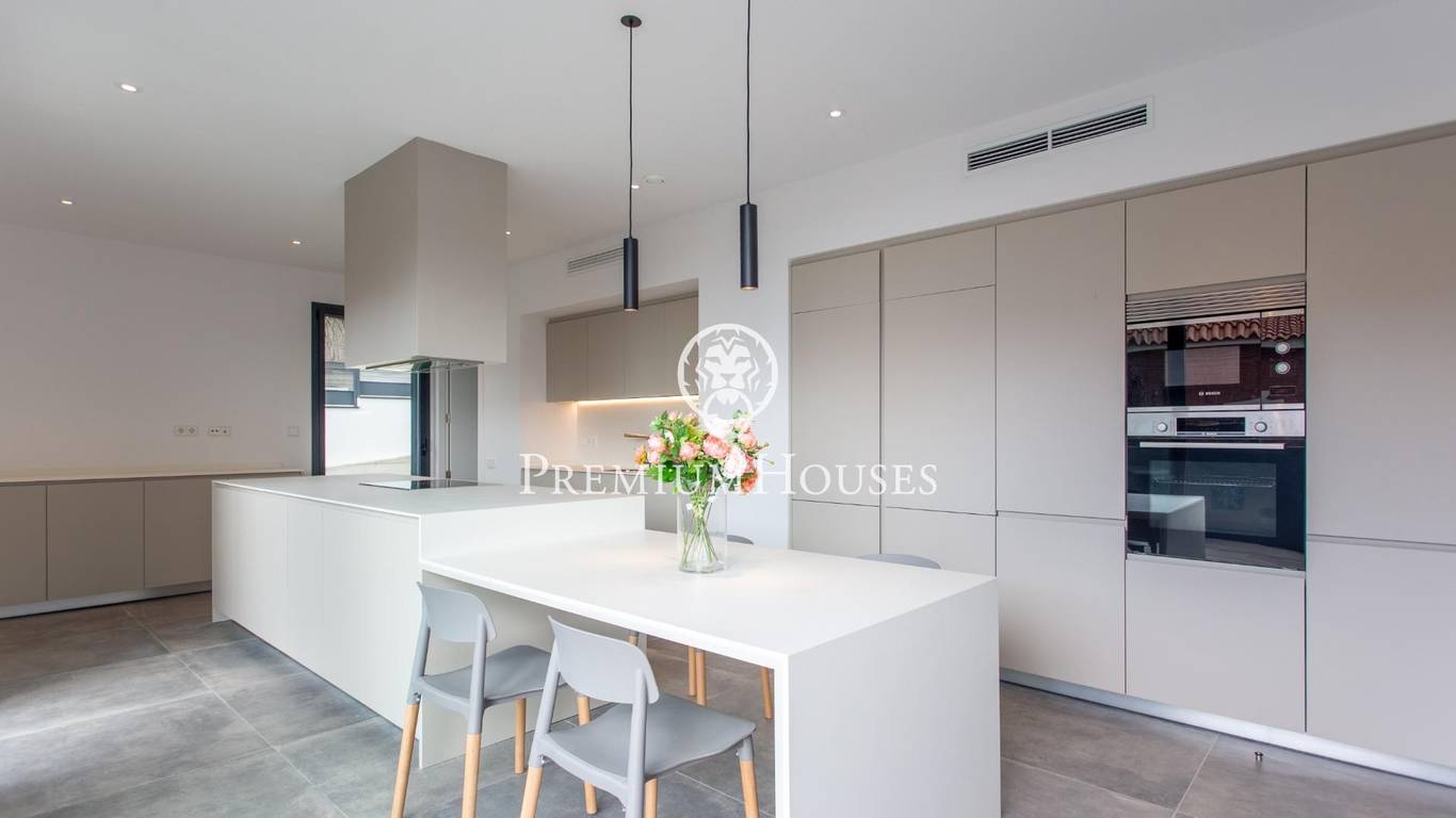 Se ofrece a la venta una espectacular vivienda con un diseño moderno y acabados de alta calidad, ubicada en una exclusiva urbanización residencial con vigilancia las 24h y una privilegiada orientación al Sur que permite tener luminosidad todo el día. La propiedad se levanta sobre una generosa parcela de 820 m y cuenta con una superficie construida de 581 m distribuidos en tres plantas y un Roof top con vistas panorámicas al mar y Barcelona conectadas por un ascensor y una elegante escalera con peldaños de roble.La planta principal alberga un amplio salón-comedor con grandes ventanales que permiten el acceso directo al jardín y a la piscina, generando un ambiente luminoso y acogedor. La cocina, de estilo contemporáneo, está completamente equipada con electrodomésticos de gama alta. En esta misma planta también se encuentra una habitación con baño en suite, junto con un funcional lavadero.En la planta superior, la vivienda ofrece una impresionante suite principal que incluye un espacioso vestidor, un baño completo y una terraza privada con vistas panorámicas al mar. Además, hay tres habitaciones más: dos de ellas tipo suite con su propio baño y una tercera con un baño independiente. Todas disponen de acceso a una terraza ajardinada que aporta calidez y conexión con el entorno exterior que incluye un Pitch Putt.La planta sótano sorprende con un garaje con capacidad para seis vehículos, un gimnasio totalmente equipado, una bodega, una sala polivalente ideal para diferentes usos y un baño adicional.La vivienda incluye numerosas comodidades y extras como sistema de riego automático, climatización por aerotermia, calefacción mediante suelo radiante, aire acondicionado, ascensor, piscina con sistema de cloración salina, instalación domótica, carpintería exterior de alta gama y certificado energético tipo A, lo que garantiza eficiencia y sostenibilidad.