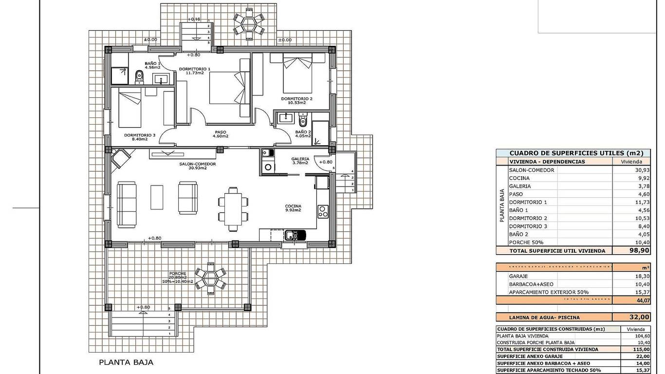 Villa provided with 3 Bedrooms and 2 Bathrooms, private swimming pool and parking space on own plot.