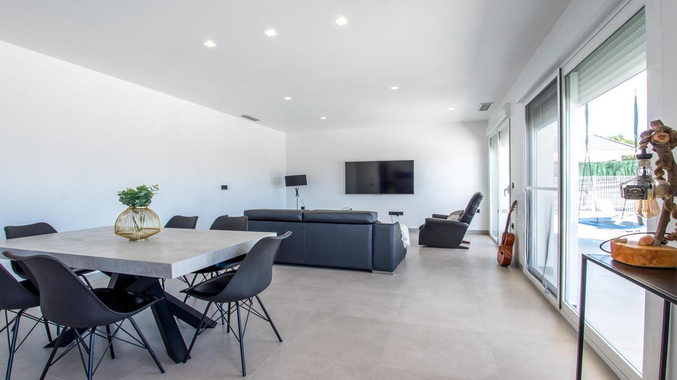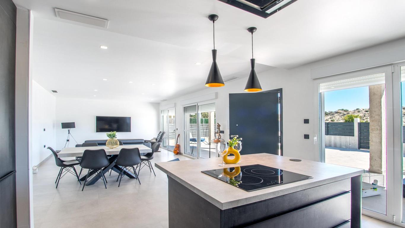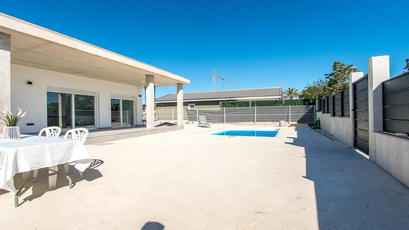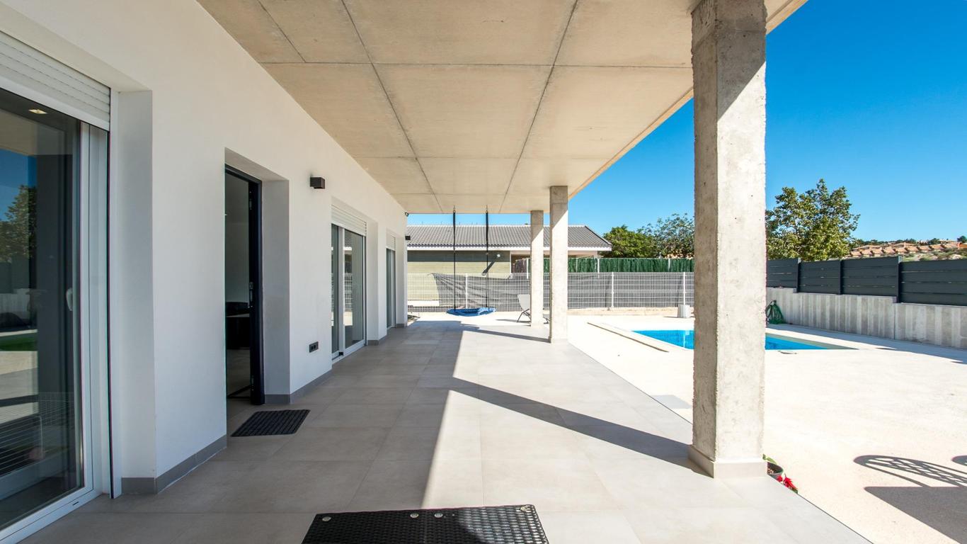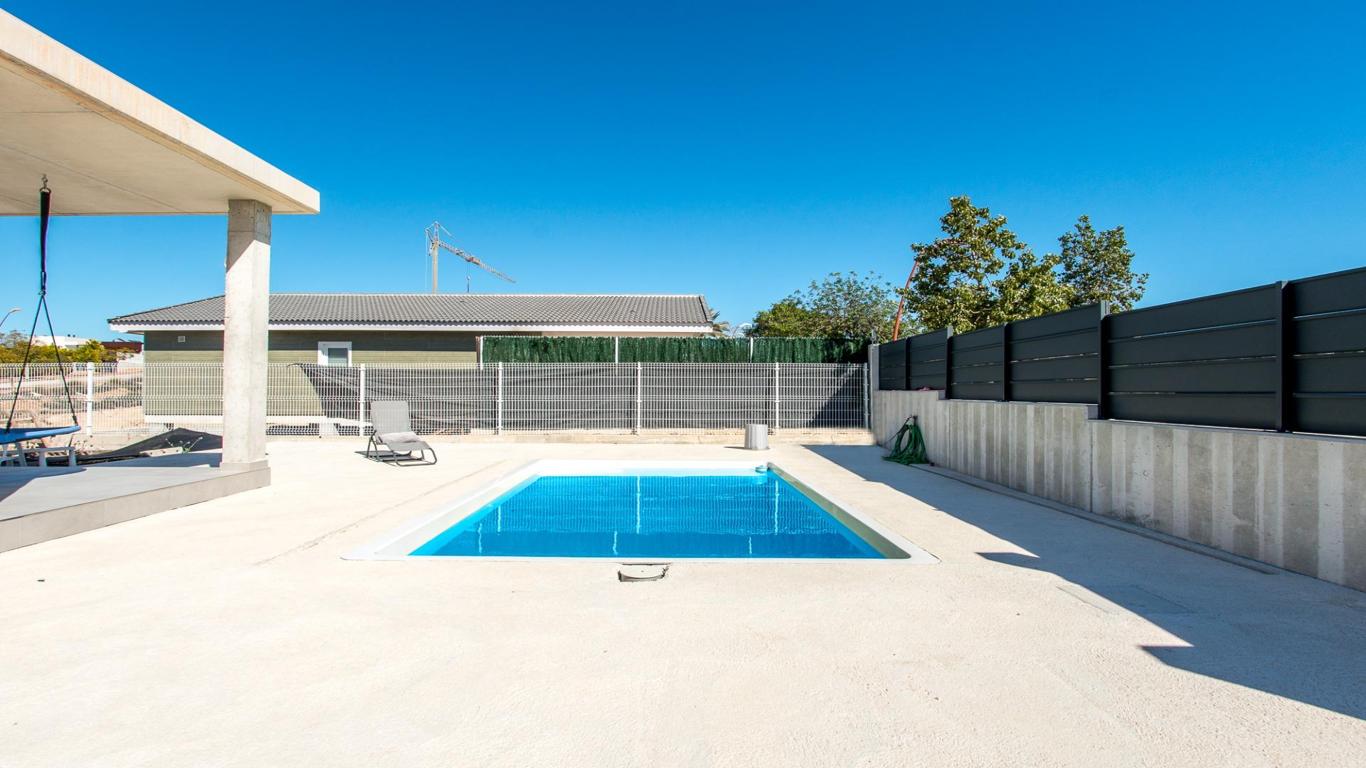 Create the home you've always dreamed of in this spectacular villa located in one of the best and exclusive residential areas of Murcia, La Quinta, in Molina de Segura. This fully residential development has 24-hour private security, entrance and exit barriers, with a guardhouse, surveillance cameras, a shopping center in the process of being equipped with shops (currently it has a children's area), spectacular landscaped walkways and an exceptional park with a soccer field, zip line, ping pong tables, picnic areas, a viewpoint, etc., measuring more than 14,000 meters in length. Furthermore, its connection to the highway in less than 5 minutes, as well as its proximity to the Alcayna urbanization and the center of Molina make this a very comfortable and practical urbanization. The villa is equipped with the highest quality finishes such as porcelain floors, double-glazed windows, solid wood doors, etc. It also has aerothermal energy and underfloor heating. All rooms are distributed on one floor and have access to the outside, with large windows that provide plenty of natural light. It also has a large basement that occupies the entire surface of the house, where you will find different spaces for a gym, TV area, vehicle parking area, lighting room and pool mechanics. As for its exterior, prepared for the installation of turf throughout the plot and with its beautiful designer pool will leave you speechless. Finally, we would like to tell you something: Discover a real estate adventure that combines quality, passion and professionalism. The trust that the owners have placed in us is a testament to our commitment to providing you with exceptional service. Here's the special touch: by contacting us directly, you'll avoid bothering them. We'll be your intermediaries and provide all the necessary assistance. We're here to provide you with the documentation and information you need, and we promise a warm and hassle-free service. We'll inform you in detail about all aspects, including purchase costs and agency fees not included in the price, to ensure your comfort and peace of mind throughout the entire process. That's our essence: providing you with peace of mind: the ideal state of tranquility you'll experience when you buy your home with us. We want you to know that both the property description and the images you see are valuable informational references; under no circumstances are they contractual. Furthermore, the price has been designated by the owner, so it may vary and is not binding until a sales contract is formalized.
