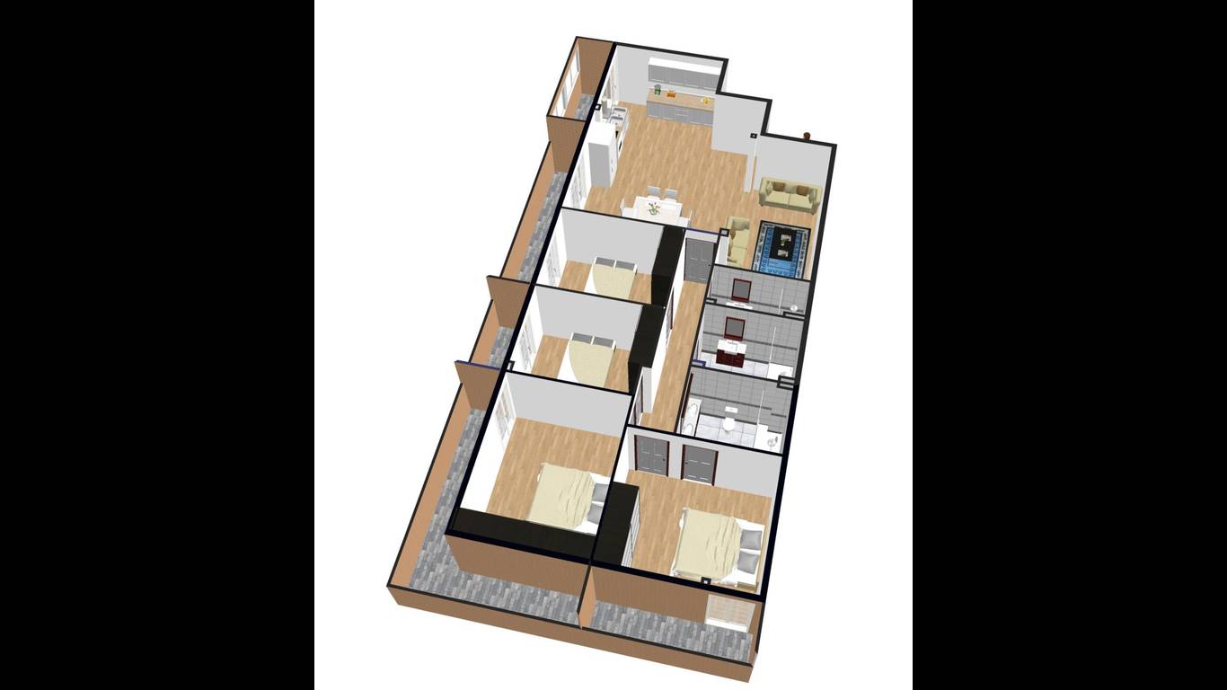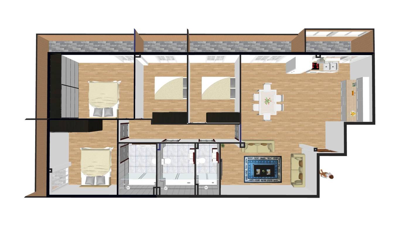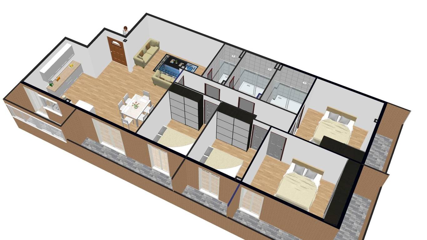 Es muy luminoso gracias a su altura en la octava planta, a que es totalmente exterior haciendo esquina, a su doble orientación norte y oeste, y a su terraza perimetral que rodea toda la vivienda. Actualmente se distribuye en cuatro habitaciones, la principal con baño en suite y todas con armarios empotrados, tres cuartos de baño, un amplio salón comedor con salida a la terraza, una buena cocina independiente con terraza tendedero y un hall recibidor. Los planos en tres dimensiones de este anuncio ofrecen la recreación en 3D de una posible reforma. También se han tratado con inteligencia artificial las fotos de algunas estancias para ofrecer la imagen de cómo podrían quedar reformadas.
