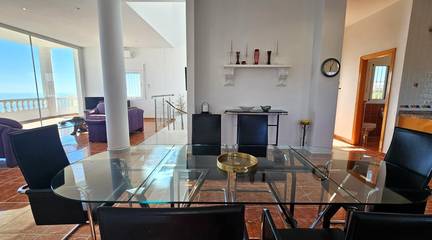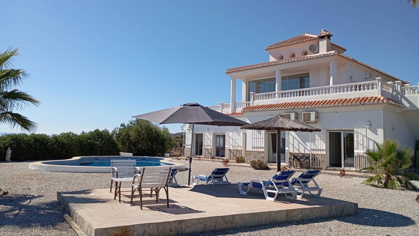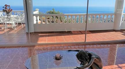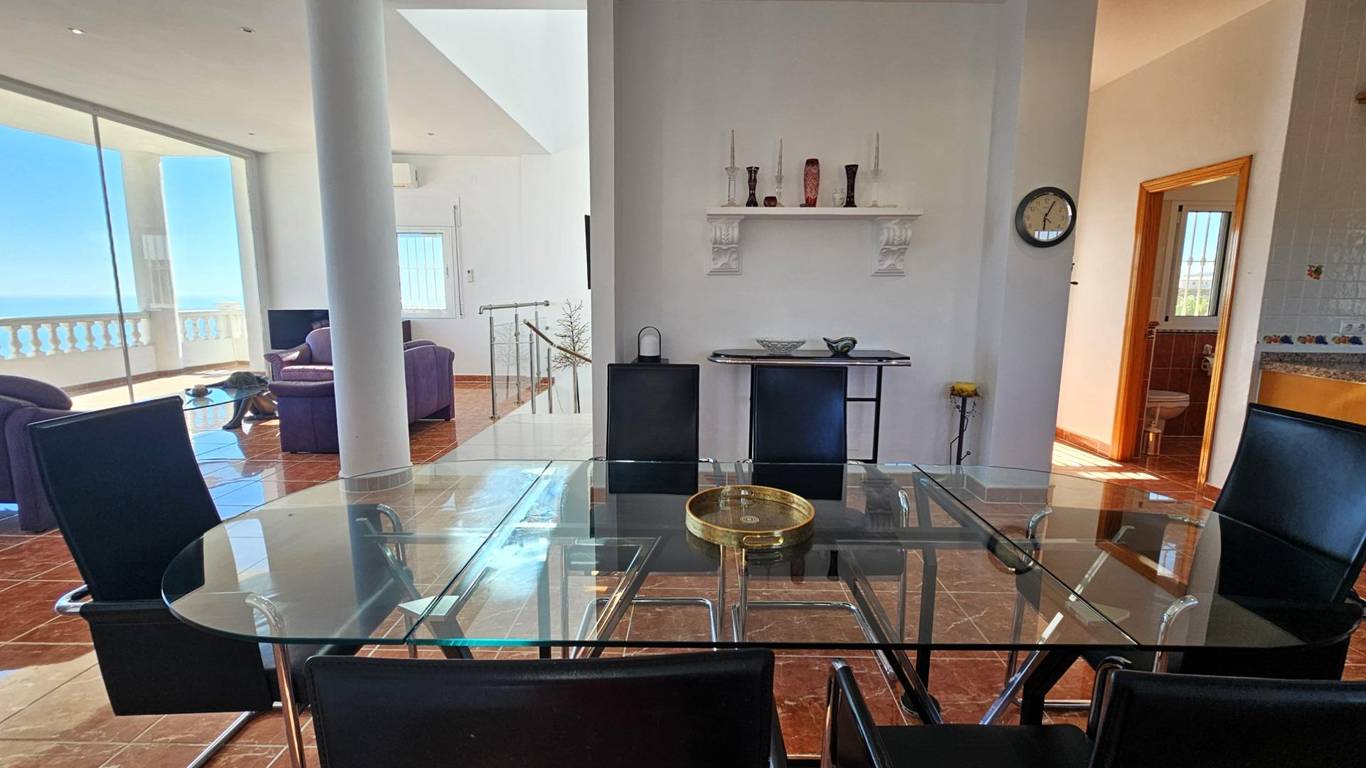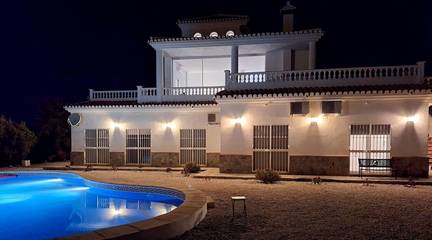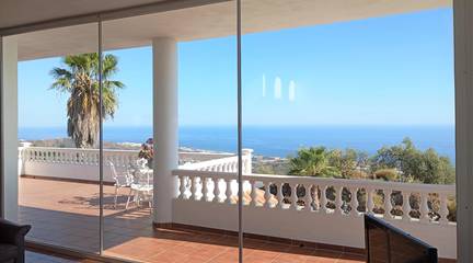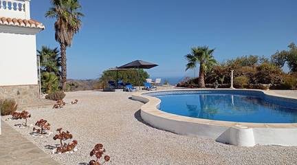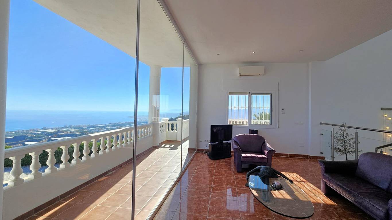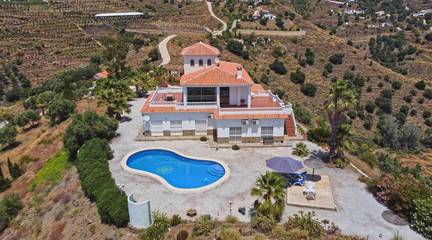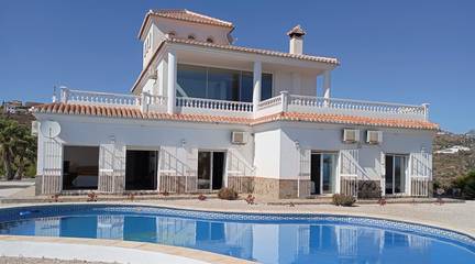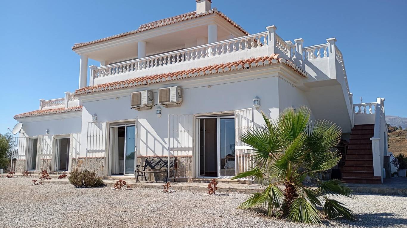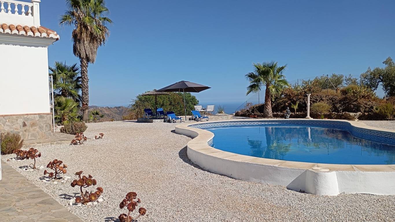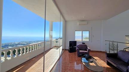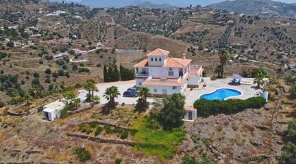 Literally the top of a mountain The purchase of your dreams on the Costa del Sol Close to Malaga and the paradisiacal Marbella and Puerto Banús. An incomparable villa for its location and geographical situation, with 352 m built, 360º VIEWS of the Mediterranean Sea and mountains, on a plot of absolutely spectacular dimensions, more than 35,000 m, an area that no villa in the area has The Beverly Hills of Spain Come and see it ACCESS The property has two entrances: one from the road that arrives from the north, from Sayalonga, and the other from the south, same road, but arriving from Algarrobo. There is plenty of space to park before reaching the house, plus a huge garage of 35 m useful, suitable for 2 cars of any size, plus storage for many belongings. The distances to the most important points in the area are: Sayalonga 3.5 km Algarrobo 4 km Algarrobo Costa 7.3 km Nerja 24 km Málaga 46 km Málaga Airport 57 km VILLA DESCRIPTION This charming house was built in 2002, designed with great style to give it the grandeur it deserves, right on top of a hill. There is no other like it in the area. GROUND FLOOR The house has an entrance hall, 4 enormous bedrooms between 16 and 32 m, each bedroom with a very large en-suite bathroom, huge built-in wardrobes for your comfort and adequate storage. Each room with direct access to the pool area. On the same ground floor there is another small kitchen for occasional use, a machinery and storage room, and the aforementioned garage. UPPER FLOOR The highlight of the house is undoubtedly the gigantic, spiral-shaped marble staircase of incomparable value, which leads to the upper floor, with impressive views of the entire East Coast of Malaga, the splendor of the Mediterranean Sea, at 180º, which can be seen from an immense living room of almost 55 m, leather sofas, a spectacular glass table with the base of a bronze sculpture, interpreted by a naked woman, sitting on a small cushion, while she takes the expansive glass top of the table in her hand, and letting it rest on her knees, a table that comes from Germany, rarely found, whose value can amount to several thousand euros. On the other side of the living room we find the dining area, and then the fully equipped kitchen, and next to it another guest bathroom. The upper floor is surrounded, in a U shape, by spectacular terraces, impressive sizes of 35 and 43 m, for your use and enjoyment, which enjoy wonderful views of the Mediterranean Sea, Eastern Coast, and mountains, all surrounded by the beauty of nature, in addition to tranquility, peace, love, and exclusive luxury life. CHARACTERISTICS OF THE ESTATE The surface of the estate is also incomparable with the other villas in the area, since the plot has more than 35 thousand square meters, a good part of it sloping,where you will have the full range of possibilities to reconvert it into an agricultural area, for the planting of all kinds of exotic fruits and vegetables of tropical origin, high value vegetables, such as avocado, mango, pitayas (dragon fruit), custard apples, loquats, as well as pomegranates, papayas, kumquats, or prickly pears, among others. It is recommended to take full advantage of the enormous potential that this farm offers, due to its possibility of investing in the preparation and planting of some of the options described above, since it can give a tremendous return on the investment, in addition to the use and enjoyment of a luxury villa. All of this can be yours. Do not hesitate to request a drone video tour that we have available on our channel, where you can tour the entire property, or request and arrange a visit to this fantastic farm. Call us and we will gladly assist you.