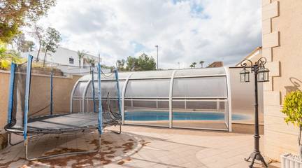 INDEPENDENT VILLA FOR SALE WITH PRIVATE PLOT OF 504 m IN MONTEPINAR. A magnificent independent villa is offered for sale located in an exclusive and quiet residential area. This property, with a private plot of 504 m, has been designed to offer maximum comfort, privacy and functionality, ideal for both a permanent residence and a holiday home. The house has a constructed area of 272 m distributed over three floors, all of them practically connected and with a careful distribution of spaces. SEMI-BASEMENT FLOOR Large parking area with capacity for three vehicles Multipurpose room with fireplace, ideal as a games area, gym, cinema or additional living room Storage room Technical room for the pool treatment plant Full bathroom MAIN FLOOR (FLOOR GROUND) Bright living-dining room with large windows and direct access to the outside Fully equipped independent kitchen, with all appliances included Laundry room with direct access to the barbecue area, which greatly facilitates the use of this area for events and meetings Three bedrooms, all of them with excellent natural light Two full bathrooms UPPER FLOOR Spacious office-type room, perfect as a home office or additional room Access to a large Open terrace, ideal for sunbathing, relaxing, or enjoying the views. EXTERIOR The exterior of the home is one of its greatest attractions. The 504 m plot is distributed as follows: A landscaped area with established vegetation. A perfectly integrated leisure area. A barbecue area and gazebo, perfect for outdoor celebrations. A swimming pool with a retractable roof, allowing year-round use and ensuring comfort in any season. This villa has been built with high-quality materials, taking care of every detail to guarantee durability, aesthetics, and efficiency. It also offers an exclusive lifestyle, with spacious indoor and outdoor areas designed to make the most of your home. By express mandate of the owner, we are exclusively marketing this property. One of our real estate agents will provide you with all the necessary information, assisting you personally and guaranteeing quality service. For this reason, please do not disturb the owner, the occupants of the home, or the neighbors. If you are a real estate agent and have a client for this property, please call us; we will be happy to collaborate. (Thank you very much for your understanding.) TAXES, PURCHASE FEES, REAL ESTATE AGENCY FEES, AND FINANCING NOT INCLUDED.