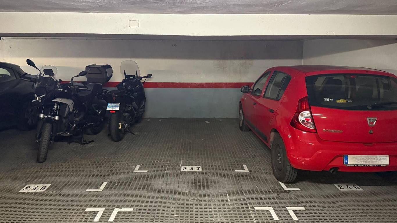 Two consecutive parking spaces (244 and 247) are for sale, one in the front and one in the back, located at 55 Rocafort Street, floor -2 in the beloved Sant Antoni neighborhood (Eixample).