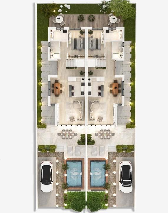 El proyecto consiste en la construcción de viviendas unifamiliares pareadas para amantes de la vida tranquila y la comodidad cerca del MEDITERRANEO.