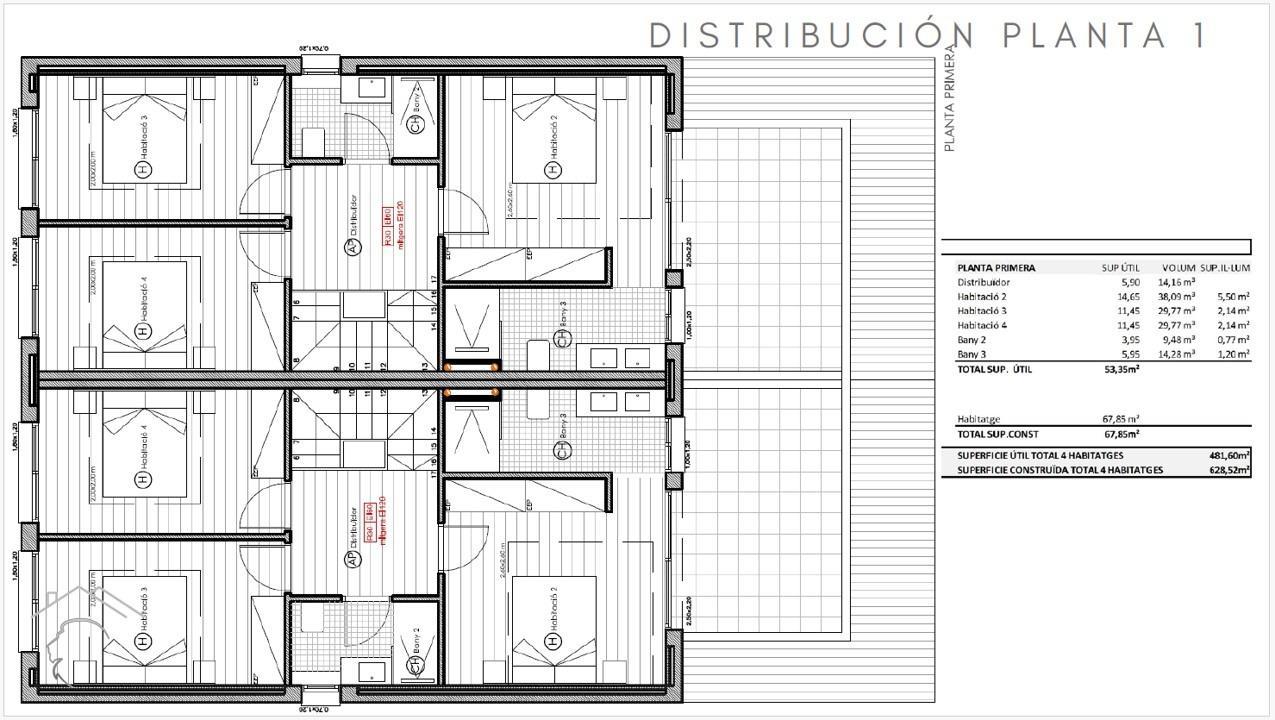 En la planta primera hay un baño y 3 habitaciones dobles, una de ellas tipo suite con baño en su interior, desde esta habitación hay salida a una AMPLIA TERRAZA.