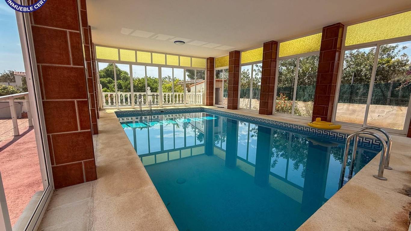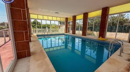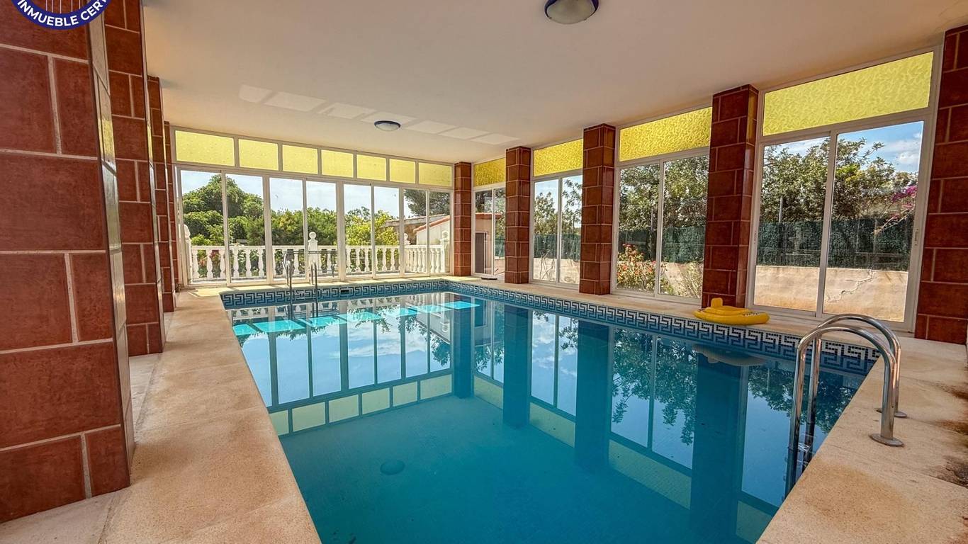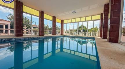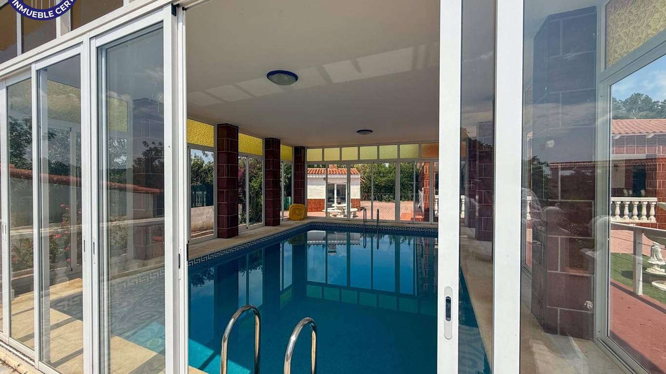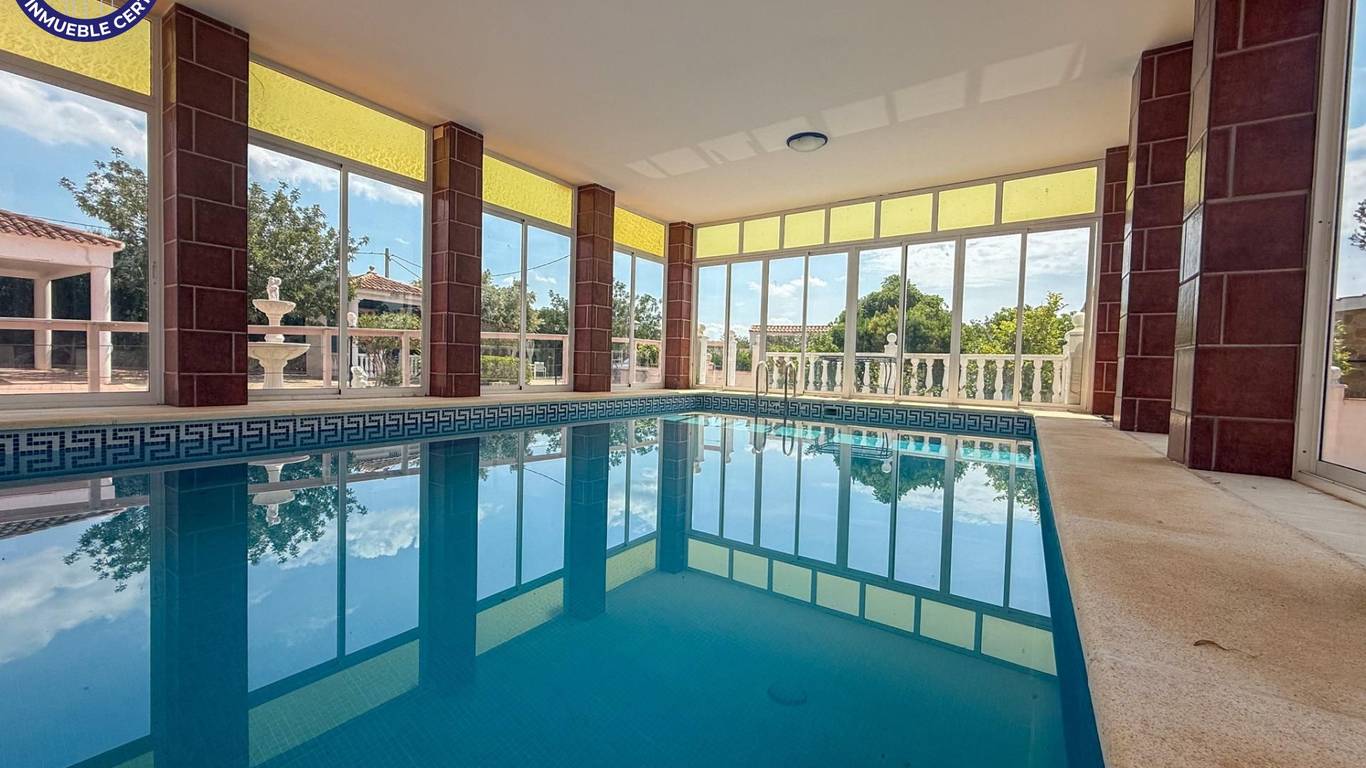 Detached rustic chalet located in the peaceful town of Olocau, Valencia. This property offers a total constructed area of 409 m2, according to cadastral data, distributed in a 206 m2 main house and several annexes. The house has five double bedrooms and two full bathrooms equipped with a Jacuzzi, one of them with a shower, providing a spacious and comfortable space. Natural light floods the rooms through large, double-glazed windows. It also has air conditioning throughout and an electric water heater. The annexes include a 59 m2 indoor pool, ideal for year-round enjoyment, a spacious covered porch with capacity for two vehicles, a 24 m2 paella grill, storage rooms totaling 107 m2, and other exterior constructions. The plot, with a registered area of 1,799 m2, is surrounded by gardens and vegetation, offering a peaceful and private setting. Financing is available. Immaculate, very well maintained, and ready to move into. This villa is ideal for families looking for a spacious, comfortable, and well-equipped residence in a natural setting while still being close to amenities. The indoor pool and paella grill add a touch of leisure and enjoyment. Its easy access and location in Olocau make it perfect for those seeking tranquility and good transport links. Olocau is a quiet town in Valencia, offering a privileged natural setting. The property enjoys good communications and easy access. Discover the comfort and spaciousness of this urban villa in Olocau, designed to enjoy life in a serene setting. The description of this property and images are for informational purposes only and are not contractual in nature. They may be modified by the real estate agent without incurring any liability to third parties. The public sale price of this property does NOT include acquisition costs (notary, registration, management, fees, etc.).