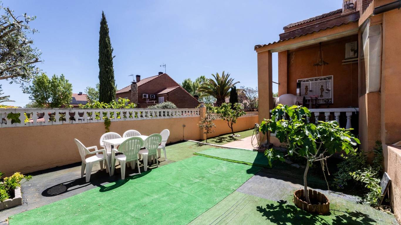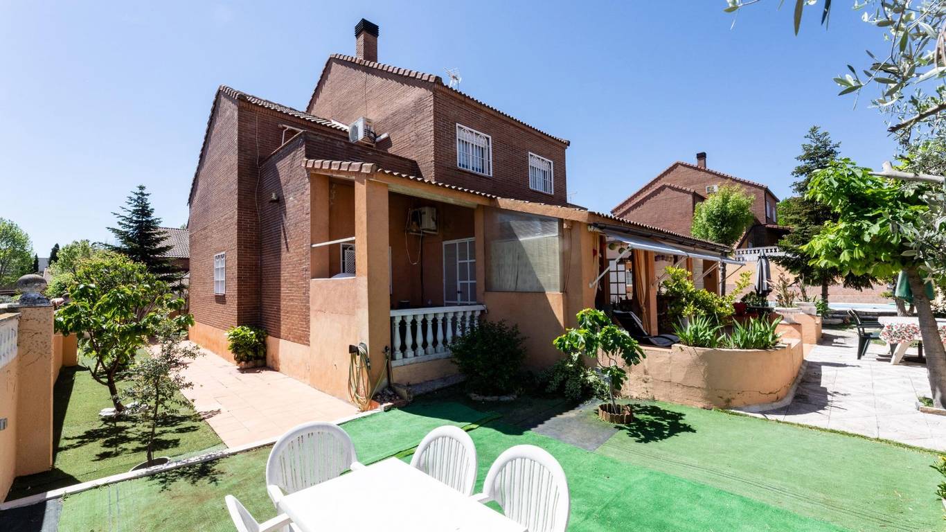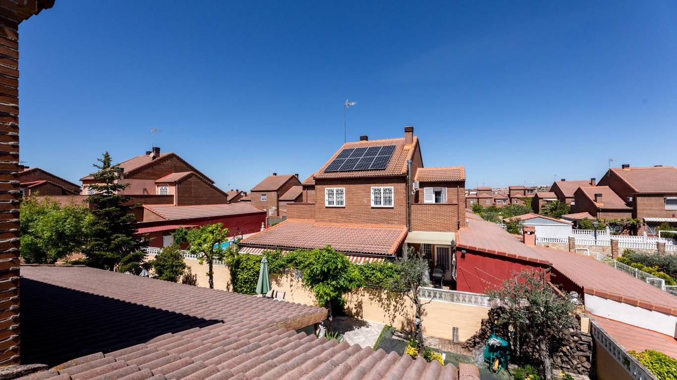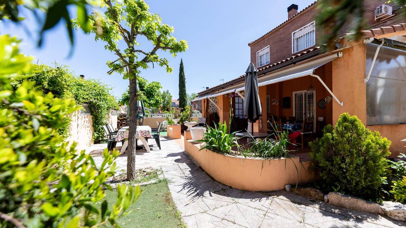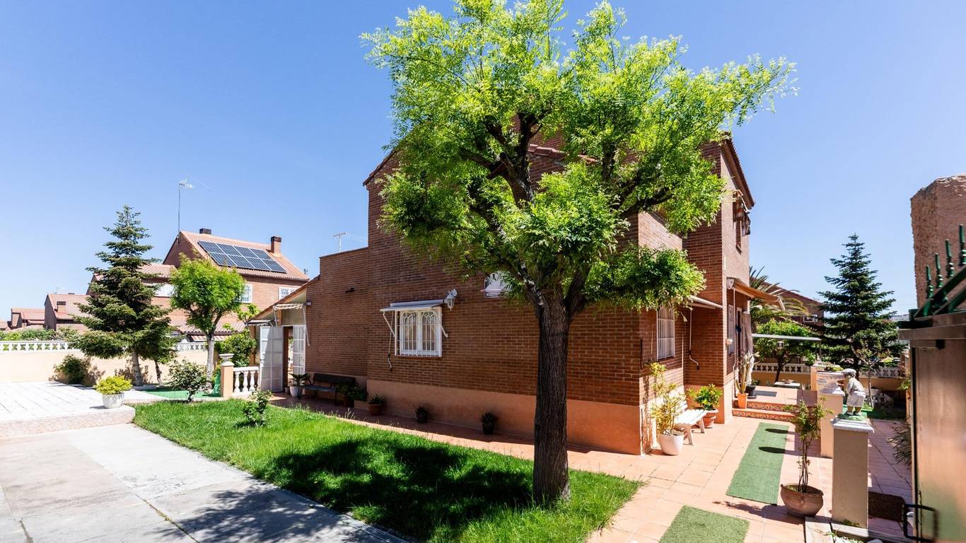 SPECTACULAR DETACHED VILLA IN THE CENTER OF ARROYOMOLINOS, WITH A PLOT OF 688m2 AND 325m2 BUILT IN LIVING ROOM AND PRIVATE POOL, WITH 6 BEDROOMS, 3 BATHROOMS, KITCHEN WITH OFFICE, LARGE PORCH, LIVING ROOM WITH FIREPLACE, GARAGE FOR 3 CARS The house is distributed over three floors built in one of the largest in Arroyo of 688 m2 with an established garden and swimming pool. On the main floor we find a hall that gives us access to a toilet with shower, down to the lower floor (old garage, current gym), bedroom-office, and the kitchen area with office and a very large living room with two heights with fireplace and air conditioning, and with direct access to the back porch, A spectacular space that continues the main floor and, due to its spaciousness and its wonderful barbecue with oven, is one of the most used and enjoyable rooms in the house. This space has awnings. The kitchen is very spacious, fully equipped, and has a large office space. Accessing the stairs, we find the second floor, which has 5 bedrooms with air conditioning and built-in wardrobes, 2 of them with a terrace. The master bedroom has an en-suite bathroom, and another bathroom serves the other 4 bedrooms. All rooms are bright and very spacious. We highlight the house's bars on all windows, built-in wardrobes, air conditioning in several rooms, awnings, etc. Garden and pool area: The plot is very large and flat, with trees and shrubs of many species (firs, strawberry trees, chestnuts) and many years old, making it one of the plots with the best-established garden in Arroyo. The pool is located on a paved area with a non-slip floor and an outdoor solar shower. The pool, made of concrete and tiled tiles, has interior stairs and access handrails. Also on the plot is the garage, which is accessed from the outside through a mechanized door and has space for three cars inside and two-thirds at the entrance. Attached is a storage room ideal for garden and pool tools. This property is unique for its spacious plot, garden, pool, and comfortable layout. So don't miss this opportunity to live in the home of your dreams in Arroyomolinos.