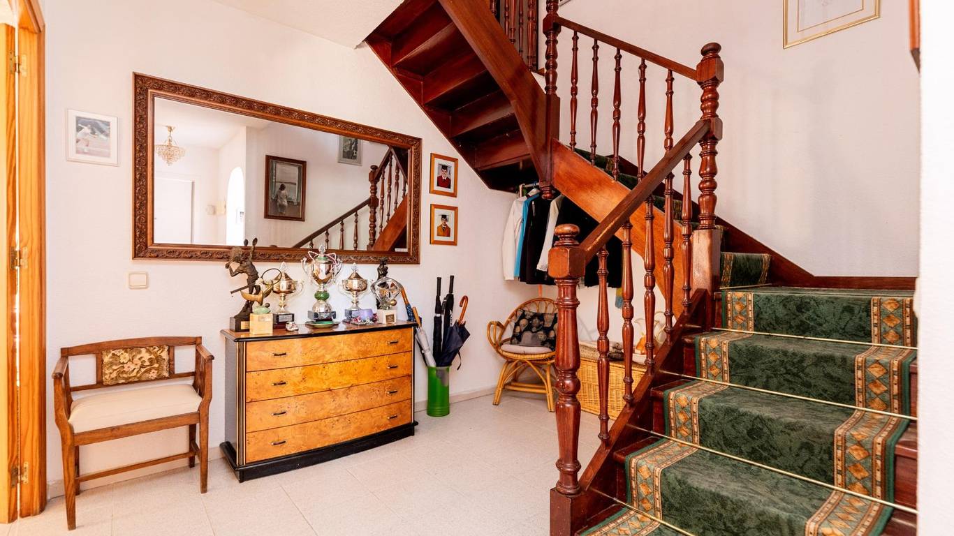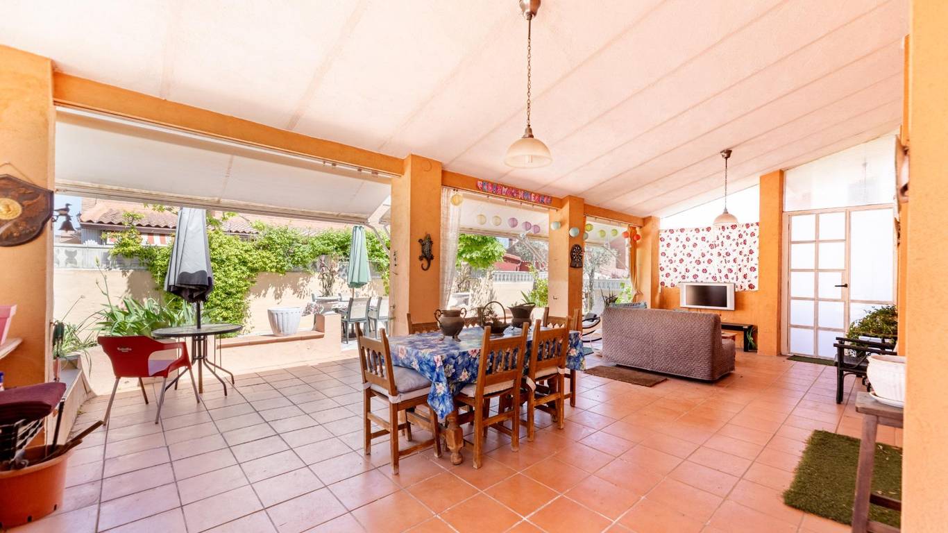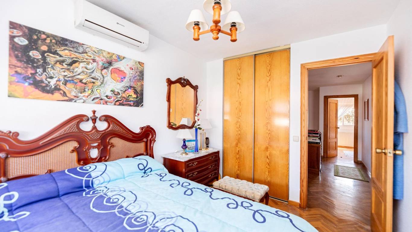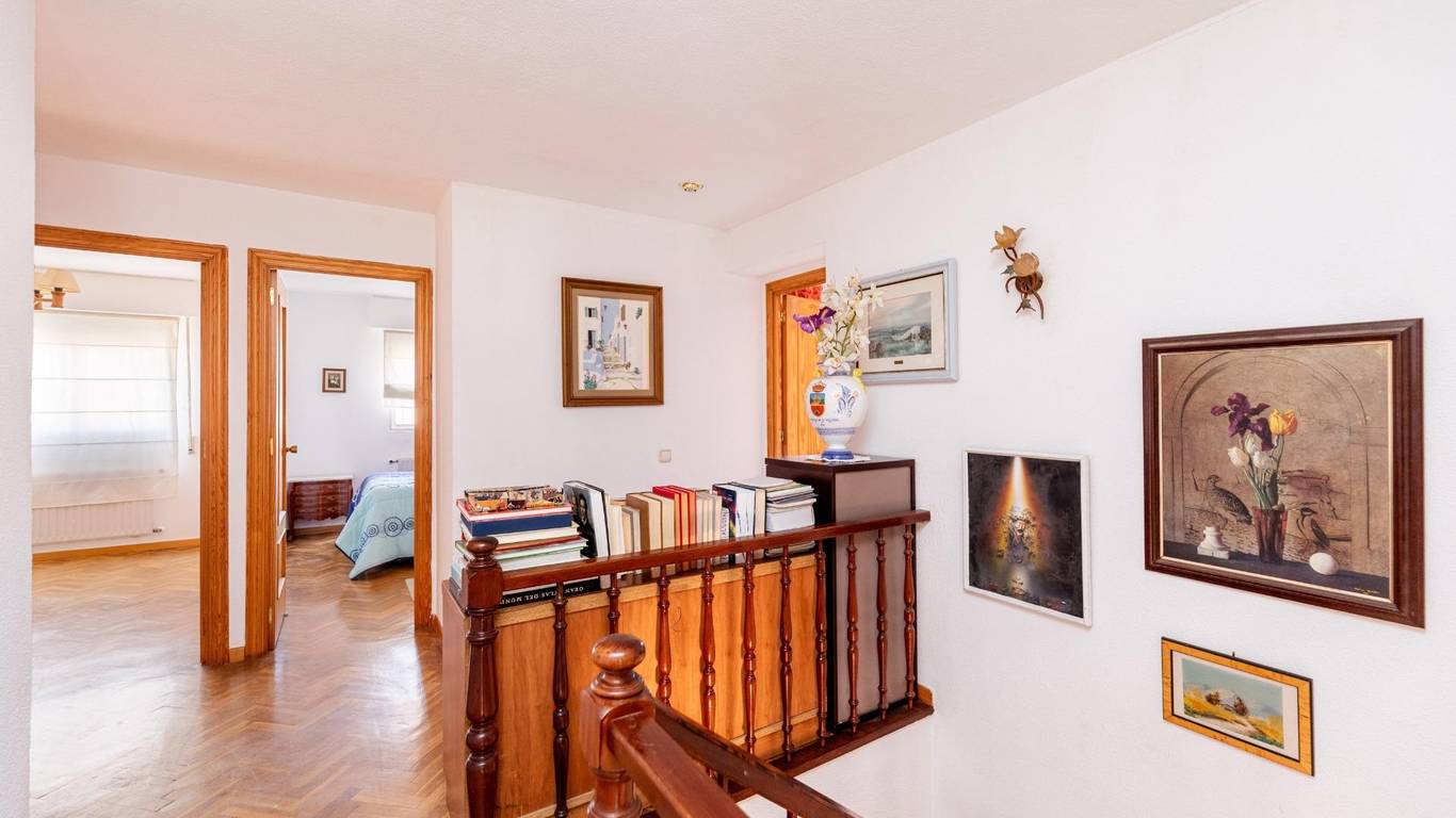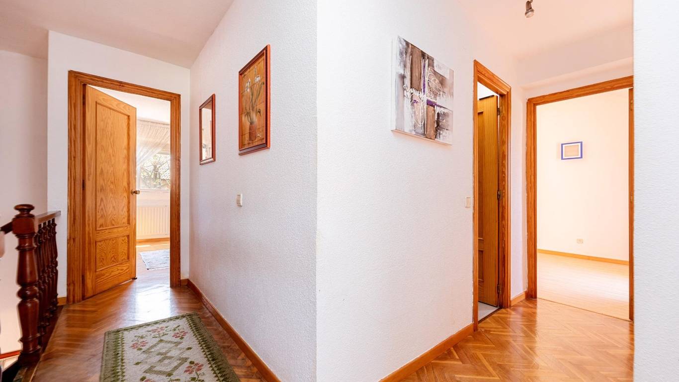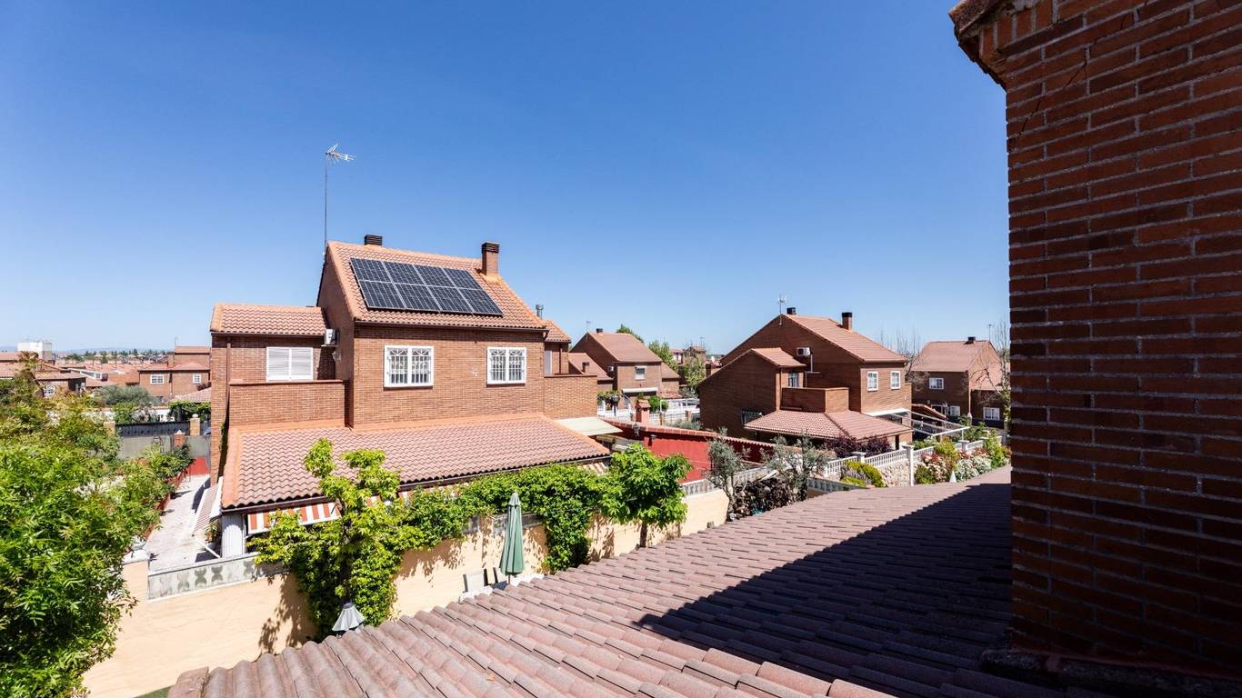 SPECTACULAR DETACHED VILLA IN THE CENTER OF ARROYOMOLINOS, WITH A PLOT OF 688m2 AND 325m2 BUILT IN LIVING ROOM AND PRIVATE POOL, WITH 6 BEDROOMS, 3 BATHROOMS, KITCHEN WITH OFFICE, LARGE PORCH, LIVING ROOM WITH FIREPLACE, GARAGE FOR 3 CARS The house is distributed over three floors built in one of the largest in Arroyo of 688 m2 with an established garden and swimming pool. On the main floor we find a hall that gives us access to a toilet with shower, down to the lower floor (old garage, current gym), bedroom-office, and the kitchen area with office and a very large living room with two heights with fireplace and air conditioning, and with direct access to the back porch, A spectacular space that continues the main floor and, due to its spaciousness and its wonderful barbecue with oven, is one of the most used and enjoyable rooms in the house. This space has awnings. The kitchen is very spacious, fully equipped, and has a large office space. Accessing the stairs, we find the second floor, which has 5 bedrooms with air conditioning and built-in wardrobes, 2 of them with a terrace. The master bedroom has an en-suite bathroom, and another bathroom serves the other 4 bedrooms. All rooms are bright and very spacious. We highlight the house's bars on all windows, built-in wardrobes, air conditioning in several rooms, awnings, etc. Garden and pool area: The plot is very large and flat, with trees and shrubs of many species (firs, strawberry trees, chestnuts) and many years old, making it one of the plots with the best-established garden in Arroyo. The pool is located on a paved area with a non-slip floor and an outdoor solar shower. The pool, made of concrete and tiled tiles, has interior stairs and access handrails. Also on the plot is the garage, which is accessed from the outside through a mechanized door and has space for three cars inside and two-thirds at the entrance. Attached is a storage room ideal for garden and pool tools. This property is unique for its spacious plot, garden, pool, and comfortable layout. So don't miss this opportunity to live in the home of your dreams in Arroyomolinos.