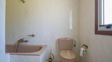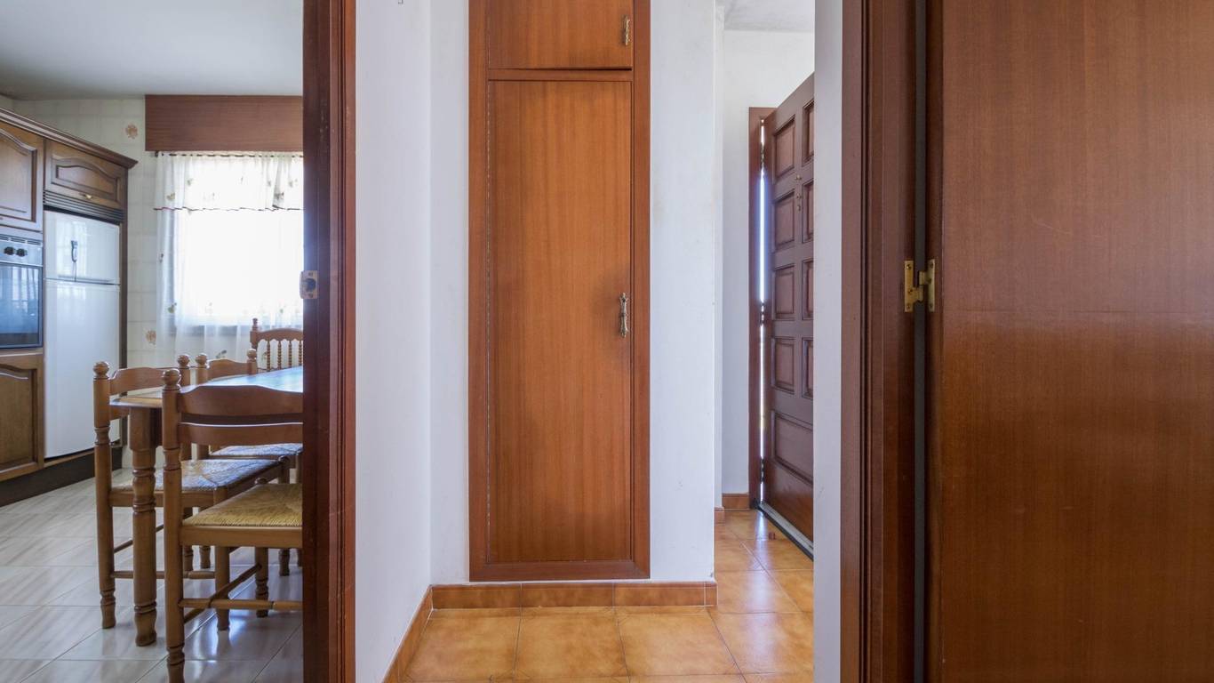 Dispone de 2 habitaciones dobles y una sencilla, además de 2 baños completos, incluyendo un baño en suite para mayor comodidad. La propiedad se encuentra para entrar a vivir, con carpintería interior de sapeli, suelo de terrazo y ventanas de aluminio.