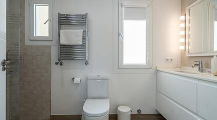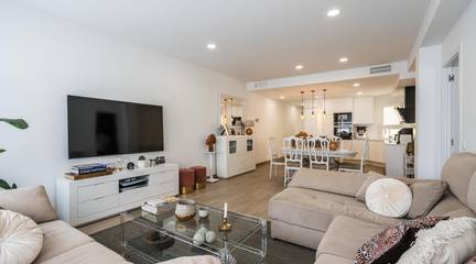 The flat has been fully renovated with high-quality materials and is ready to move in. It features four spacious bedrooms and two full bathrooms fitted with Roca sanitaryware. The large corner living room, kitchen, and dining area are integrated into a bright open space, thanks to excellent orientation and large Kommerling windows that provide top thermal and acoustic insulation.
