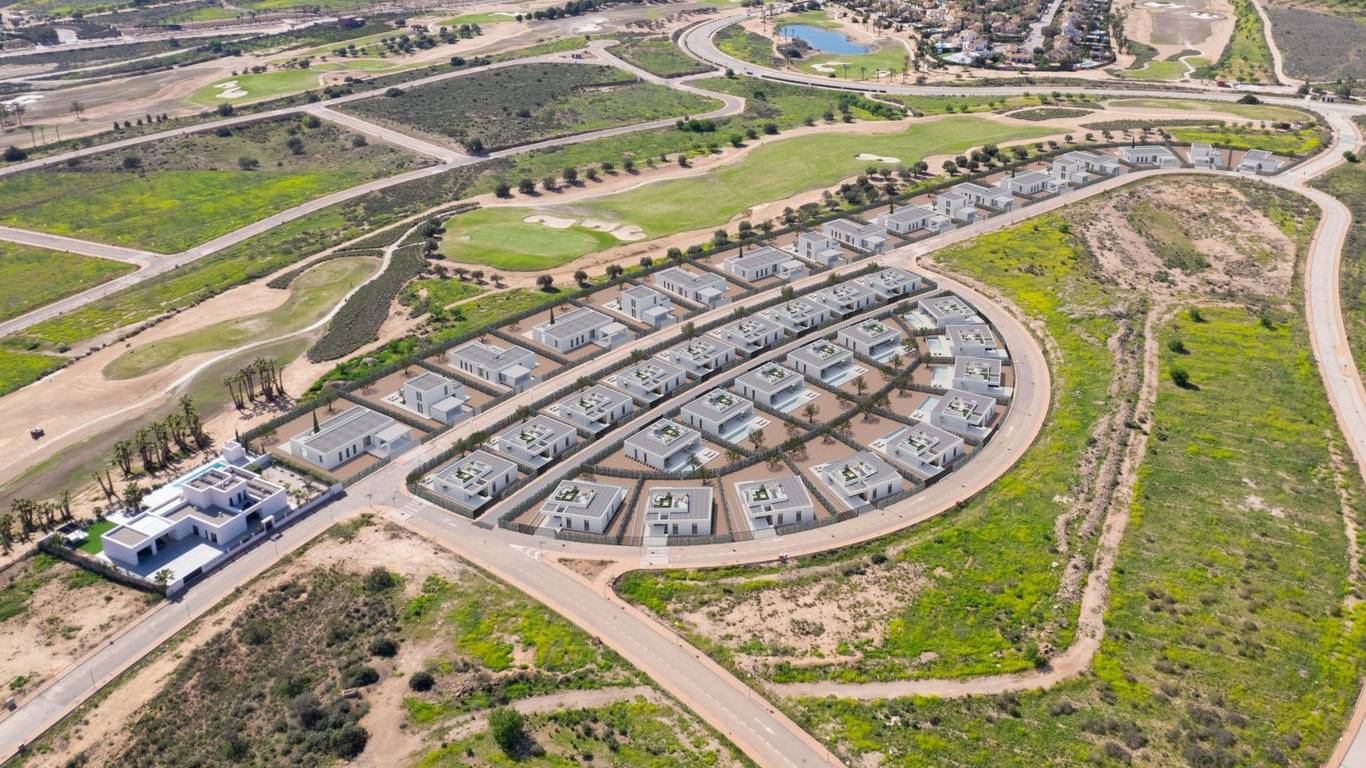 Exclusive villas with private pools at Hacienda del Álamo Golf Resort, Costa CálidaModern villas with private pools in one of Spain's finest golf resortsDiscover a unique opportunity to purchase a newly built villa at an exceptional price in the Hacienda del Álamo Golf Resort, located between the historic cities of Cartagena and Murcia, in the heart of the Costa Cálida. These contemporary villas are designed to offer comfort, privacy and elegance, and are located in an exceptional setting dedicated to golf and leisure.Each property offers a spacious layout with 3 bedrooms and 2 bathrooms on one floor. Private rooftop solarium. With plots starting from 396 square metres and a built area of 111 square metres, these homes offer ample space for indoor and outdoor living.High quality features and finishesThese villas are equipped with all modern amenities to ensure maximum comfort and style, including:Garden with drip irrigation systemFully equipped kitchen with fitted wardrobes and appliances includedPre-installation for ducted air conditioningBathrooms with furniture, mirrors and shower screensAluminium windows with thermal break and double glazingAccess to a large communal swimming pool with natural grass and children's play areaPrivate 3x6 metre swimming pool with showerLuxury living at Hacienda del Álamo Golf ResortHacienda del Álamo is renowned as one of Spain's finest golf resorts, offering residents a relaxed, sporty and comfortable lifestyle.18-hole golf course and academySports facilities including tennis, paddle tennis, gym and fitness classesMain clubhouse with panoramic views, a Mediterranean restaurant and sunny terraces4-star hotel and spa for relaxation and well-beingSpaces for the whole family, with children's play areas, swimming pools and bike lanes.Traditional Spanish village with shops, cafés and new restaurants opening soon.Strategic location with excellent connectionsCorvera Airport (Murcia): 18 km (approx. 15 minutes)Cartagena: 36 kmMurcia city centre: 40 kmMar Menor beaches: 28 kmShopping centres (Dos Mares, Espacio Mediterráneo): less than 30 kmYour dream home next to the golf course awaits youWhether you are looking for a permanent residence, a holiday retreat or a smart investment on the Costa Cálida, these golf course villas in Hacienda del Álamo are the perfect choice. Contact us today for more information or to arrange a personalised viewing.