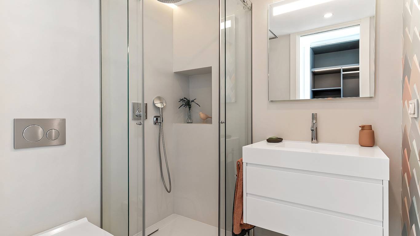 Villa Senza is distributed over 3 floors, the top floor has a garage for two cars and an entrance hall that allows us to access the rest of the property. On the middle floor are three of the four bedrooms of this house, two main bedrooms and two additional bedrooms. The main bedroom located on this floor has the perfect position to soak up the wonderful sea views, it has access to a private terrace and it has an en-suite bathroom as well as a walk-in closet. The other two bedroom also each have their own en-suite bathrooms, spacious wardrobes and they share a terrace. There are also extra cupboards in the corridor that leads up to the bedrooms.