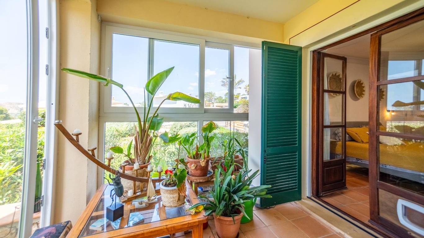 À lintérieur, le salon-salle à manger avec cheminée donne directement sur le jardin. La cuisine indépendante, entièrement équipée, dispose de plans de travail en granit et dune buanderie. Lappartement comprend deux chambres doubles, chacune avec salle de bains privative, dressing et placards intégrés, ainsi quun WC invités. Il est équipé de la climatisation intégrée, de fenêtres en bois à double vitrage, de sols en céramique et de volets traditionnels majorquins.
