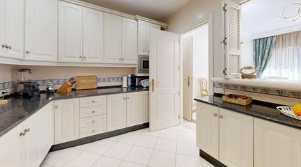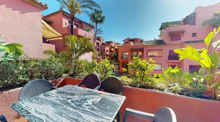 This modern single storey property, located in the urbanisationJardines de Don Carlos, has three bedrooms and two bathrooms, and is ideal for those looking for comfort and an excellent location. It is located just a few metres from the beach in Elviria, which makes a perfect choice for enjoying the sea and the sun.Upon entering, we are greeted by a large glazed terrace with orientation East, from which we can appreciate the views to the gardens and to one of the communal swimming pools, an ideal space to enjoy all year round. This terrace connects with a bright living room that leads to a second terrace, where the sun shines all morning.The property has three spacious bedrooms with fitted wardrobes.The two bathrooms, one of them en-suite, have been recently refurbished to include shower trays. The kitchen is spacious and has top of the range appliances and a separate utility room. The property is equipped with air conditioning and central heating. The floors are marble and the windows have double Climalit glazing and automatic shutters.An ample storage room and a garage space with electric charger are included in, which is an added advantage for owners ofelectric vehicles. This urbanisation offers three swimming pools, gymnasium and sauna, making an ideal place to enjoy your leisure time.The location is unbeatable as it is close to all amenities, such as restaurants, supermarkets, pharmacies, and has easy access to the motorway. Marbella centre is only 10 minutes away by car.Do not hesitate to contact us at for more information or to arrange a viewing. This property is an opportunity you will not want to missThe Abridged Information Document is at your disposal. Costs: Tax (ITP or IVAAJD) notary and registry fees.MPR