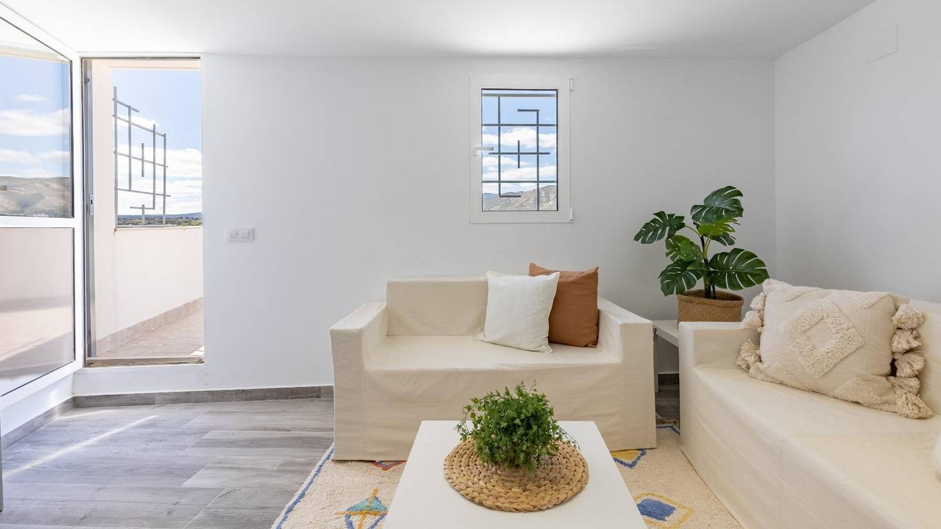 Upon entering the house, we discover a spacious living-dining room from where you can perfectly appreciate the distribution of the whole house. To the left, we find a double bedroom with a large window that offers spectacular views of the village and the mountains. The master bedroom, also located on the left side, has an en suite bathroom and a room designed to install a comfortable and practical dressing room.