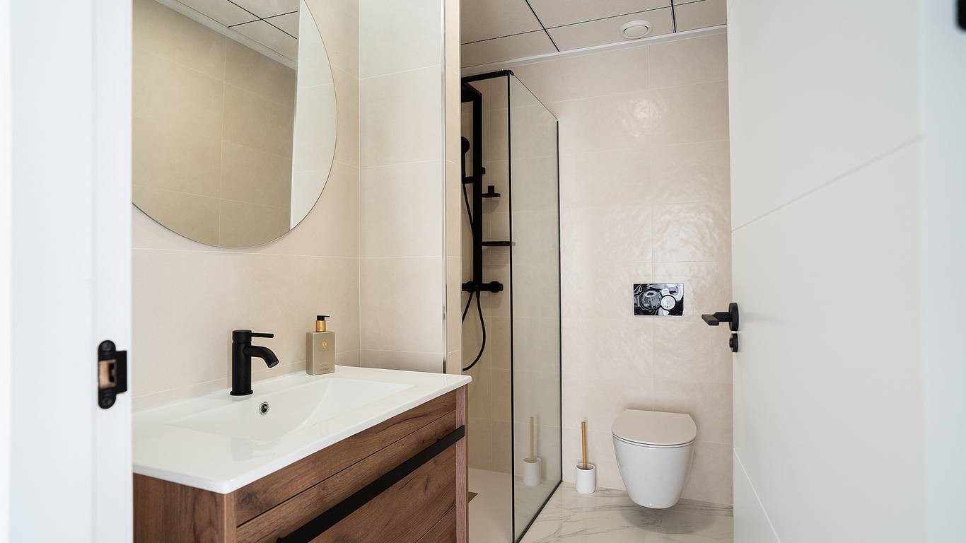 Small-scale complex with spacious apartments a short distance from the beach. Complete with communal pool, children's pool and jacuzzi.