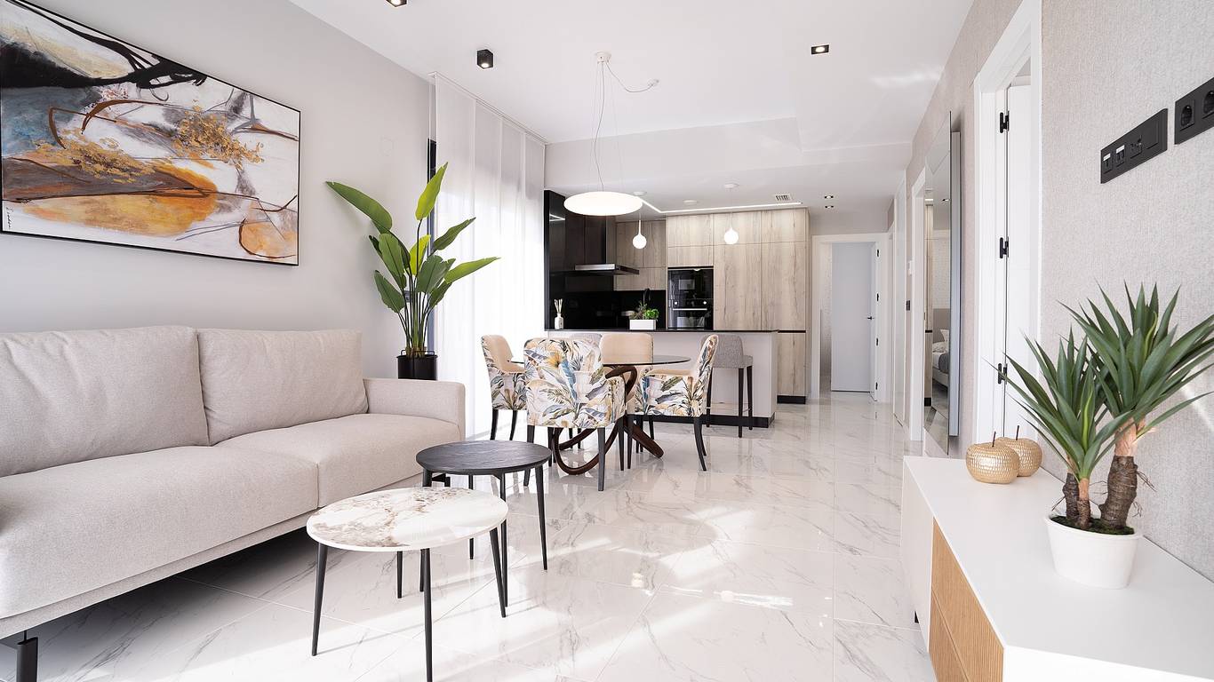 Pilar de la Horadada, known for its beautiful beaches and Mediterranean landscape. The town offers modern amenities such as shops, restaurants and sports facilities, including nearby golf courses. It is approximately 45 minutes drive from Alicante airport and 30 minutes from Murcia airport. This makes it an ideal destination for both holidaymakers and permanent residents.