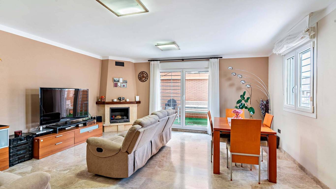 Planta baja: El salón-comedor es muy amplio, luminoso y acogedor, con chimenea que aporta calidez y estilo. Una gran cocina a medida aprovechando todo el espacio de la pared con armarios hasta el techo, totalmente equipada con todos los electrodomésticos. También en esta planta, un baño completo con plato de ducha y un patio privado con acceso directo desde el salón, ideal para organizar comidas o veladas al aire libre.