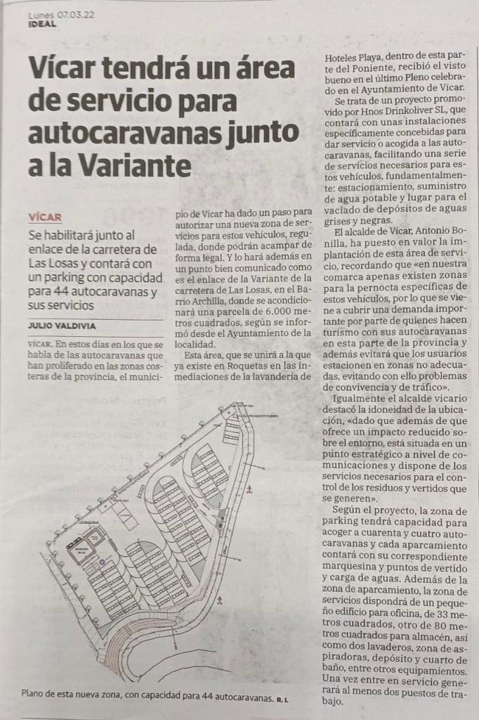 I have the pleasure of presenting a perfect investment - fenced land with electricity and water, distributed over 6,208 meters prepared for a motorhome camp with a project and road permit, or with the option of setting up different businesses, such as a gas station, supermarket, construction of a 1,000 meter warehouse, collection point, parking for trailers or other possibilities. - On the other hand, it has another piece of land next to it of 514 meters to use as a parking lot or billboards. - Located in the cortijo blanco area belonging to the term of vicar, next to the junction of the Las Losas road, strategic location. We have a financial department that can adjust to the financing you need. Documentation available to the consumer according to Decree 218/2005 of the Andalusian Government and Law 12/2023, of May 24, for the Right to Housing. Intermediation Fees Included in the price. No commission for the buyer. In compliance with Andalusian Regional Government Decree 218/2005 of October 11, the customer is informed that notary, registration, property transfer (ITP) or VAT fees, and other expenses inherent to the sale are not included in the sale.