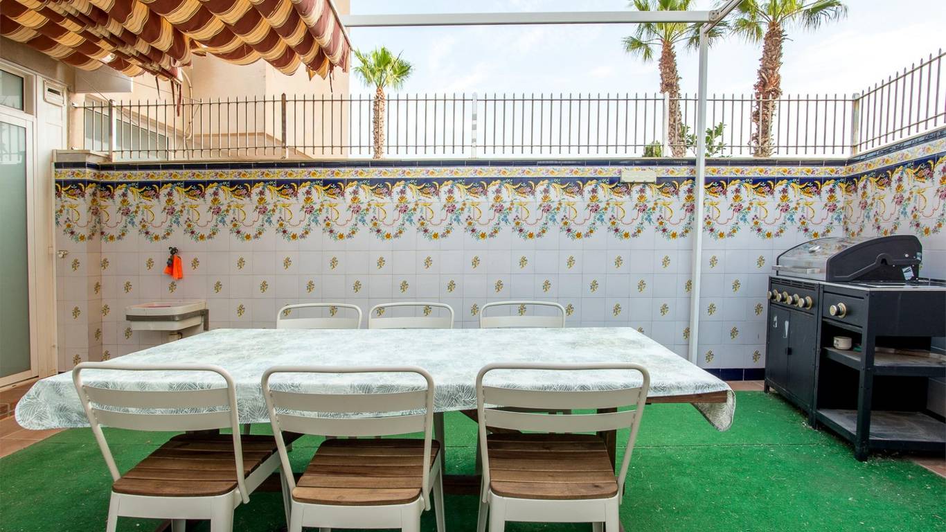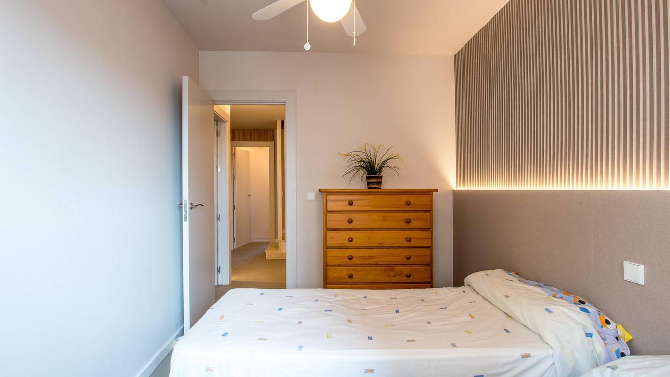 Create your new refuge in La Manga, KM 14, more than a house, a living experience by the sea. Just beyond the iconic Estacio Bridge, a gem hides between two seas: a semi-detached house that combines comfort, design, and a privileged location. From the first moment, you are welcomed by a cozy porch, perfect for enjoying sunsets or a quiet read in the sun. Upon crossing the door, the ground floor opens into a spacious living-dining room that blends with an open, modern, and functional kitchen, designed to enjoy every moment with family or friends. From here, you access a private rear patio, ideal for al fresco meals or relaxing moments. A guest toilet completes this floor, providing practicality for everyday life. On the first floor, relaxation takes center stage: three bright bedrooms, two bathrooms (one en suite), and a layout designed to offer privacy and comfort. And if you're looking for inspiration or a special corner, the attic with a terrace is waiting for you. Imagine a workspace with views or a place to gaze at the stars. In the basement, you'll be amazed by 65 m of multifunctional space: private parking, a games area, a gym, a movie theater... you decide how to enjoy it. All renovated with top-quality materials, taking care of every detail. In addition, the development has a communal pool that will delight both adults and children during the summer. A home designed to be enjoyed all year round in one of the quietest and most exclusive areas of La Manga.