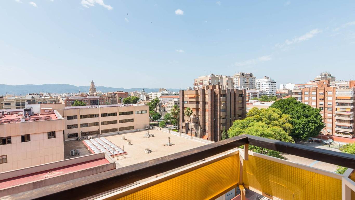 Las vistas desde la terraza son simplemente impresionantes podrás deleitarte con panorámicas que abarcan gran parte del casco urbano murciano.