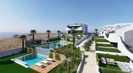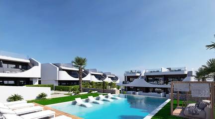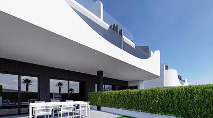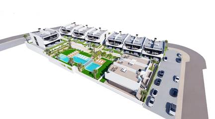 Welcome to a new bungalow complex in San Miguel de Salinas, a charming town near the coast with beautiful views of the Mediterranean Sea and the salt lakes. This project offers modern bungalows, both on the ground floor with a private garden and on the top floor with a spacious solarium and stunning views.