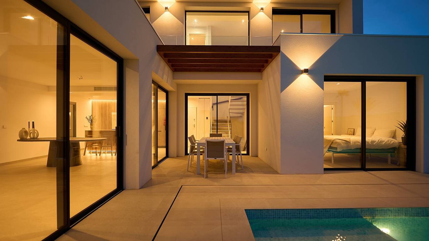 The villas are designed with wooden structures and bioclimatic elements that promote energy efficiency and environmental friendliness. They offer luxurious finishes, open spaces with lots of natural light and optional personalizations, such as underfloor heating, extra lighting and custom interior, offer the opportunity to furnish the home completely to your own taste.
