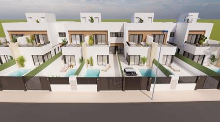 Modern semi-detached villas with private pool near the sea in Santiago de la RiberaLocated in the San Blas area of Santiago de la Ribera, Murcia, one of the most attractive areas of the Mar Menor.This development is designed with 12 villas with 3 bedrooms and 2/3 bathrooms, including a private pool, terrace and solarium with summer kitchen in selected homes. The villas feature elegant and functional interiors, fully equipped kitchens with all appliances, and pre-installation for ducted air conditioning.This development offers a unique opportunity to enjoy design, comfort and style just a few minutes from the sea.Exclusive new-build development just 1 km from the beachDiscover this limited edition development of semi-detached villas located in Santiago de la Ribera, a charming coastal town on the Murcian coast, known for its relaxed lifestyle, clean beaches and excellent year-round climate. These new homes are located just 1 km from the coast of the Mar Menor, offering the perfect combination of privacy, comfort and proximity to essential services and leisure options.Contemporary design with functional layoutEach villa is carefully laid out over two floors and some units enjoy a rooftop solarium, providing ample space for modern living. The properties feature:3 spacious bedrooms, including one on the ground floor2 or 3 full bathrooms.Private garden and swimming pool.Terrace on the first floor and some units with a rooftop solarium, ideal for sunbathing or entertaining guests.Private parking within the plot.In addition, two of the homes have photovoltaic panels installed for energy savings.High-quality finishes and featuresBuilt with attention to detail and to modern standards, the homes include:Secured entrance doorMotorised aluminium shuttersFitted kitchen with appliancesBathroom furniture with mirror and lightPorcelain shower tray made to measure for the bathroom with screens installedPre-installation of ducted air conditioningThese homes are designed to be enjoyed all year round, whether as a main residence, second home or investment for holiday rentals.Privileged location on the Costa CálidaSantiago de la Ribera offers a dynamic Mediterranean lifestyle with everything close at hand:Beach (Mar Menor) 1 kmLa Ribera shopping centre 2 kmRoda Golf 5 kmSan Javier Airport 6 kmLo Pagán marina 4 kmDos Mares shopping centre 3 kmExcellent road access to Murcia (40 km) and Cartagena (30 km)With its rich local culture, weekly markets, promenades and water sports options, Santiago de la Ribera is an ideal place to enjoy the best of the Costa Cálida.Make your dream of living on the coast a realityDon't miss this unique opportunity to purchase an elegant, newly built villa in one of the most sought-after areas of the Murcian coast.Contact us now for more information or to arrange a viewing.