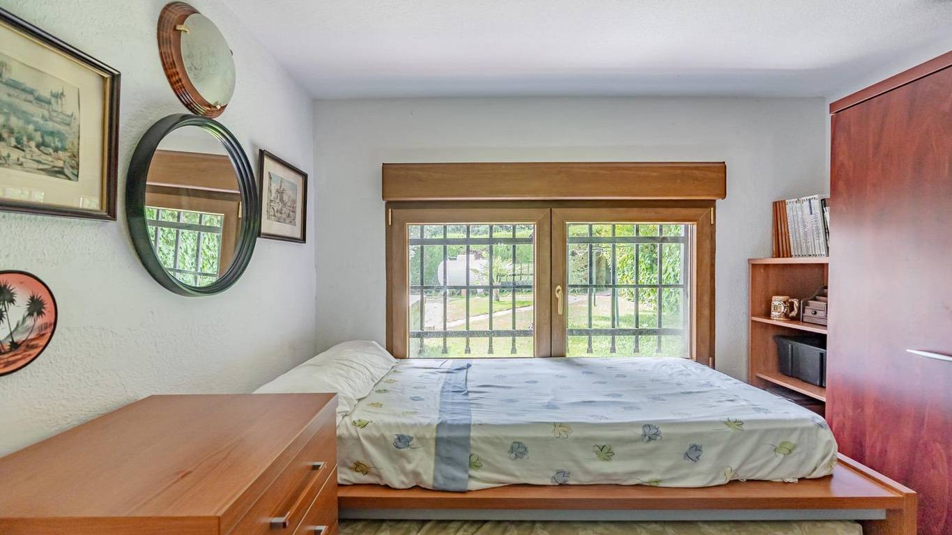 La vivienda cuenta con garaje techado para dos vehículos, y espacio adicional para aparcar varios coches en la propia parcela cobijados por árboles que le aportan sombra