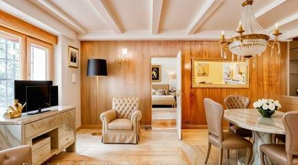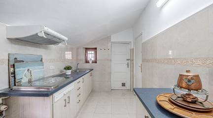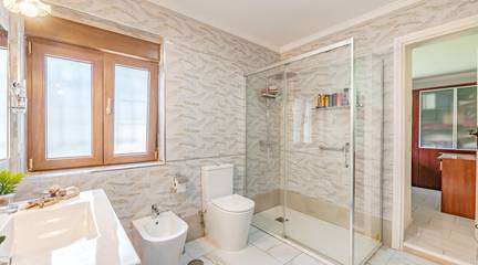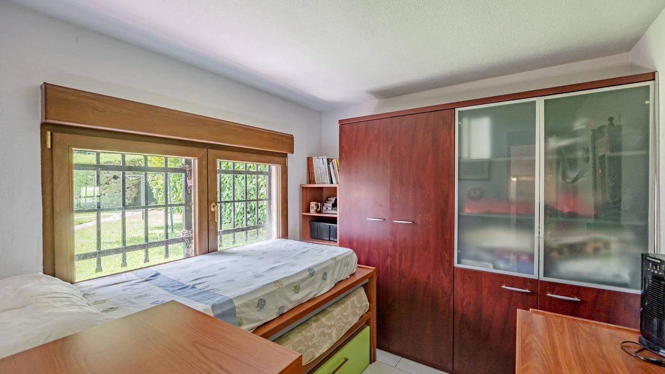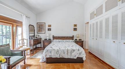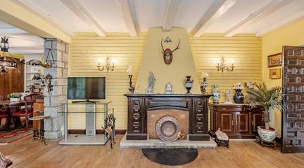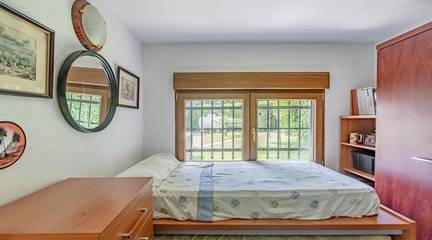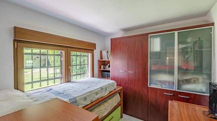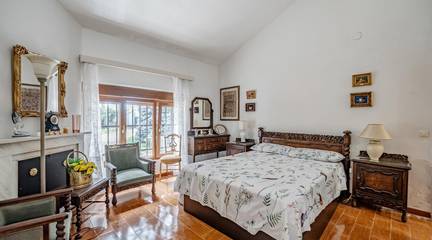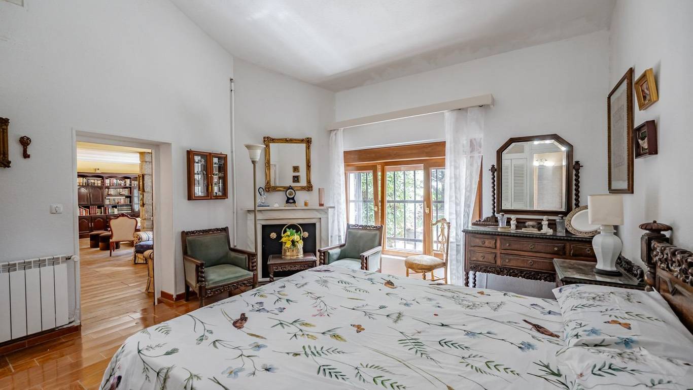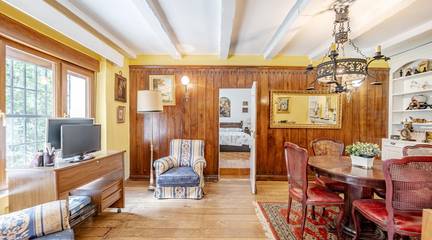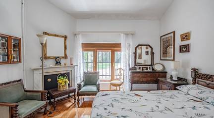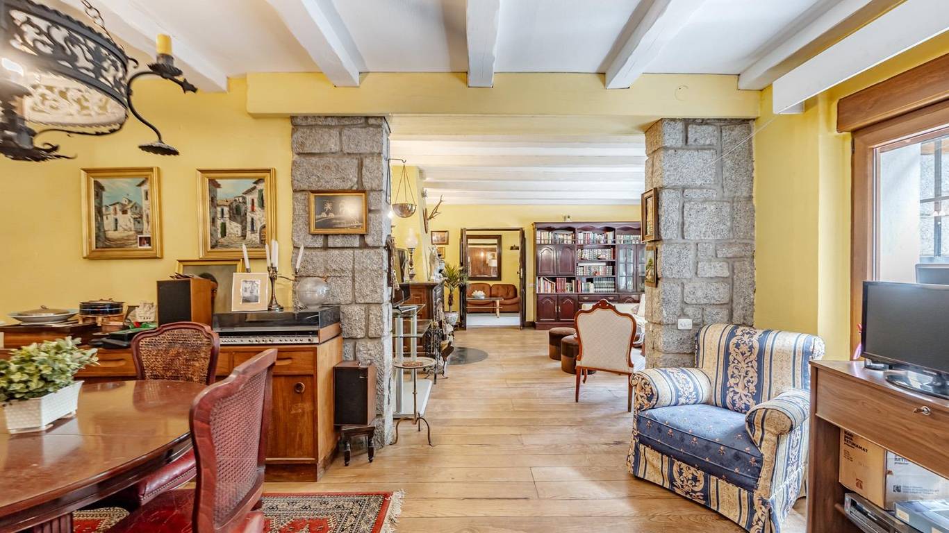 La cocina, con acceso directo al jardín trasero, está distribuida en dos espacios diferenciados: una zona de preparación y una agradable zona de comedor. El salón comedor, amplio y lleno de luz natural, cuenta con dos chimeneas. Desde aquí se accede a una zona independiente que ha sido acondicionada como apartamento para invitados. Este espacio, que también cuenta con entrada propia desde el exterior, incluye un dormitorio de generosas dimensiones con chimenea, baño completo y una pequeña cocina con salida al jardín.