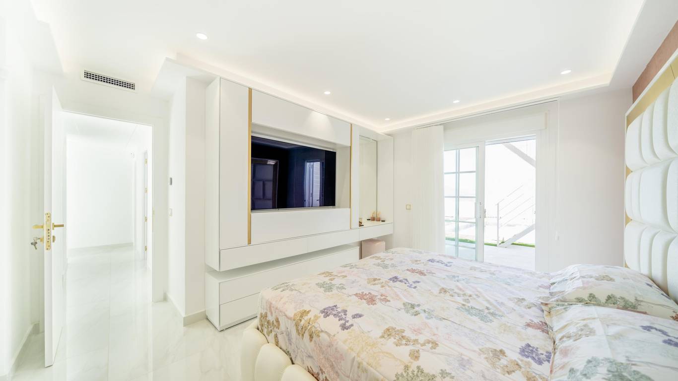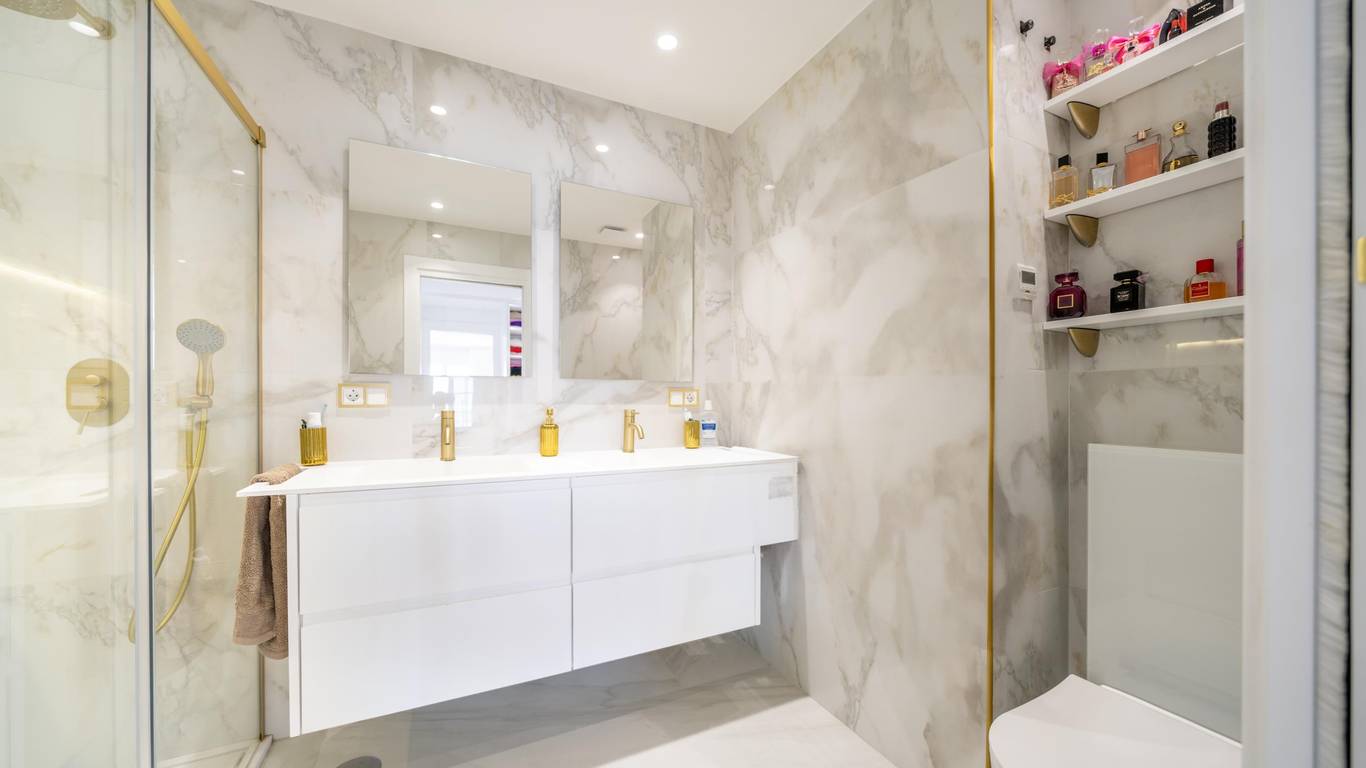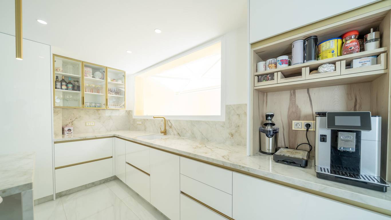 The lower level (111m2 built) is dedicated to rest and relaxation, featuring four bedrooms, including a master suite with walk-in wardrobe and private bathroom. A second full bathroom serves the remaining bedrooms. Three of the bedrooms open directly onto the main terrace, where you'll find a spectacular heated infinity saltwater pool, complete with automatic safety covers for peace of mind. This outdoor area also includes a fully equipped summer kitchen and a covered chill-out zone, perfect for unwinding while enjoying the breathtaking views.
