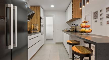 Откройте для себя эту уникальную жемчужину в престижном жилом комплексе The Edge, одном из самых эксклюзивных на Новой Золотой Миле. Эти элегантные апартаменты с 2 спальнями на первом этаже сочетают в себе современный дизайн, исключительное качество и непревзойденное расположение с прямым доступом к пляжу и открытым видом на сады, бассейны и Средиземное море. Планировка и пространство: С самого первого момента этот дом удивляет своим простором и светом. Большая гостиная-столовая выходит прямо на впечатляющую террасу площадью 35 м² и в собственный сад площадью 32 м², идеально подходящий для наслаждения климатом Коста-дель-Соль круглый год. Современная кухня открытой планировки полностью оборудована высококачественной техникой. В главной спальне есть собственная ванная комната, встроенные шкафы и прямой выход на террасу. Вторая спальня, также очень просторная, имеет собственную террасу и доступ к полноценной ванной комнате. Открытая жизнь. Большие панорамные окна гармонично сочетаются с внешним миром, позволяя наслаждаться расслабленным образом жизни на лоне природы, моря и садов. Премиальные удобства курорта: Круглосуточная охрана, Панорамный бассейн с видом на море, Крытый бассейн с подогревом, Спа-центр с сауной и турецкой баней, Полностью оборудованный тренажерный зал, Прямой доступ к набережной и пляжу. Местоположение: Расположен в Арройо Энмедио, Эстепона, всего в нескольких минутах от центра города, супермаркетов, ресторанов и всех удобств. Тихое и эксклюзивное место с отличным транспортным сообщением с Марбельей, Пуэрто Банусом и Сотогранде. Инвестиционная возможность: Недвижимость имеет лицензию на сдачу в аренду на время отпуска, что делает ее отличным вариантом как для постоянного проживания, так и для высокодоходных инвестиций. Технические характеристики: Площадь застройки: 121,28 м² (включая общие элементы). Примерная полезная площадь: 103,58 м². Основная терраса: 35 м². Частный сад: 32,20 м². Спальни: 2 ванные комнаты (1 в спальне). Кладовая: 7,04 м². Парковочное место включено в стоимость. Канальная система кондиционирования, подогрев пола с помощью аэротермического теплового насоса. Домашняя автоматика, моторизованные жалюзи, высококачественная отделка. Первый этаж, ориентированный на юг. Жить здесь — это привилегия. Чтобы получить дополнительную информацию или договориться о встрече, свяжитесь с нами сегодня.