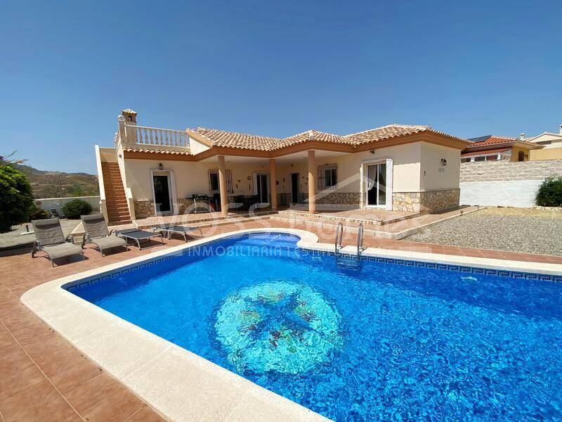 NUEVA Y EXCLUSIVA DE VOSS HOMES: Una preciosa villa de 3 dormitorios y 2 baños en la popular forma de "L" para mayor privacidad en los dormitorios, el salón y el jardín. Cuenta con aire acondicionado frío/calor, piscina de 8 x 4 m, solárium y jardines privados de 631 m² de fácil mantenimiento con impresionantes vistas al campo. Se vende en la zona de Los Llanos de Peral, en Zurgena. A 3 minutos en coche de un popular bar/restaurante.